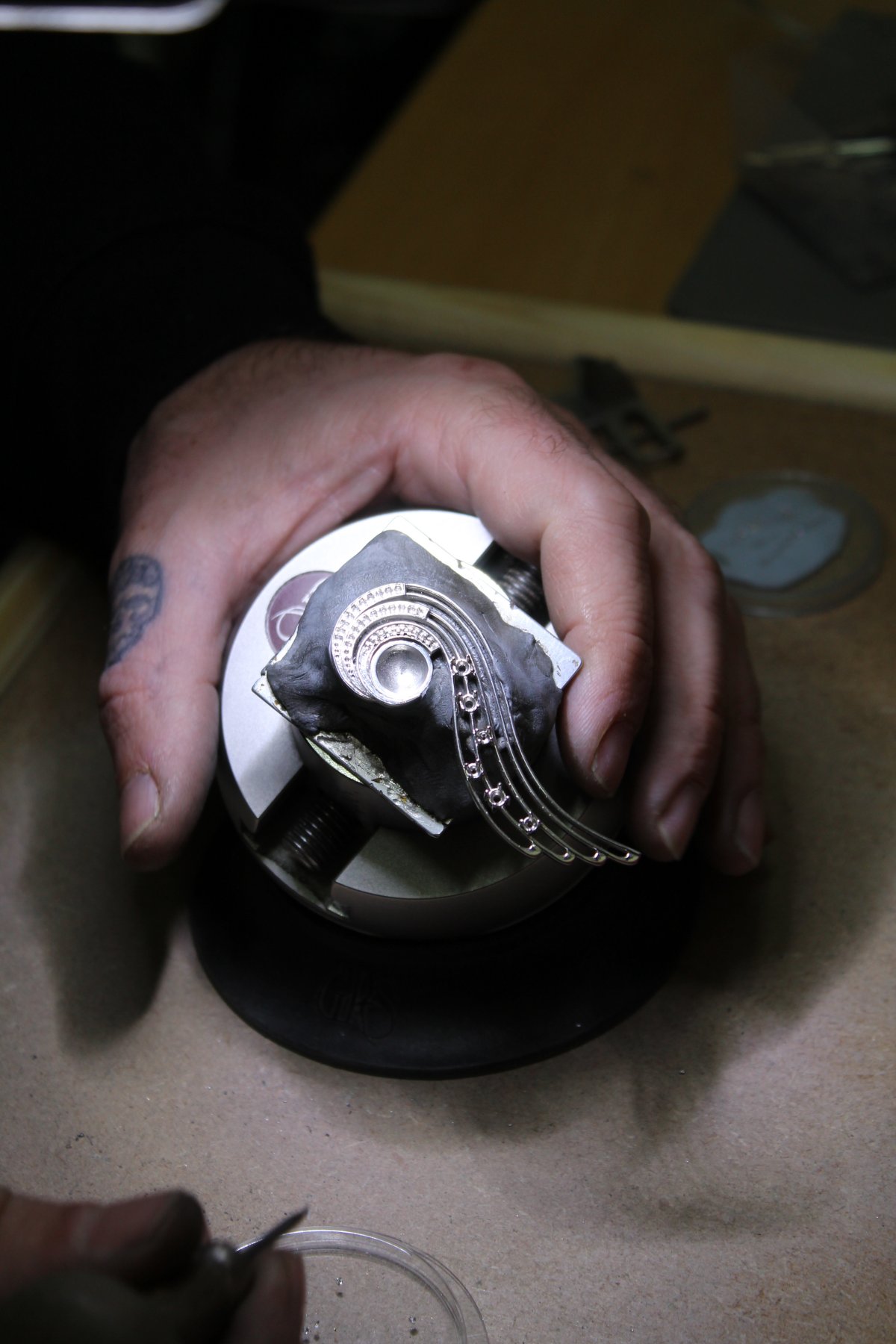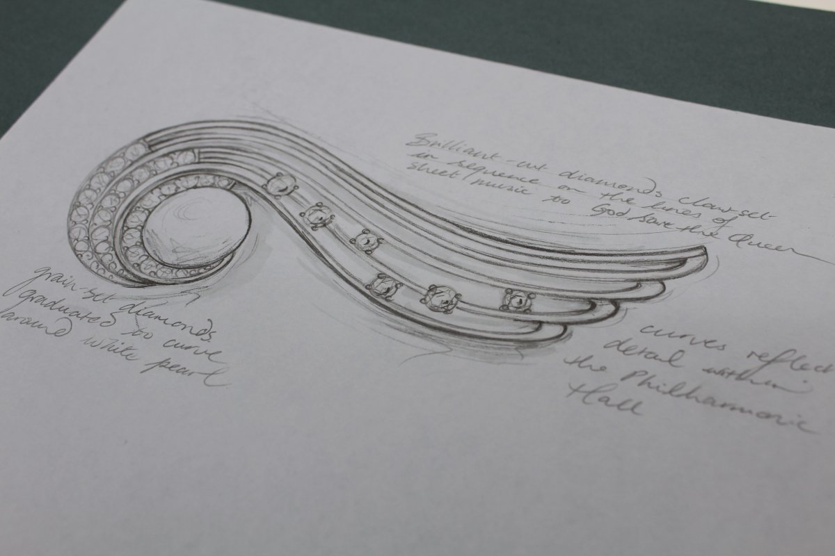 And here’s a view of the brooch during its construction process, which took place in-house at DMR. The firm’s managing director, John Robinson, reflected on the collaboration between the company and the philharmonic: “It has been a pleasure to collaborate with our friends at Liverpool Philharmonic on the design of this bespoke piece of jewellery for The Queen’s Platinum Jubilee. Not only does it mark this unique occasion that we are celebrating here in the UK, but it also reaffirms a genuine friendship that we have shared with the organisation for many years. We believe that the Liverpool Philharmonic remains one of the jewels in Liverpool’s musical crown.”