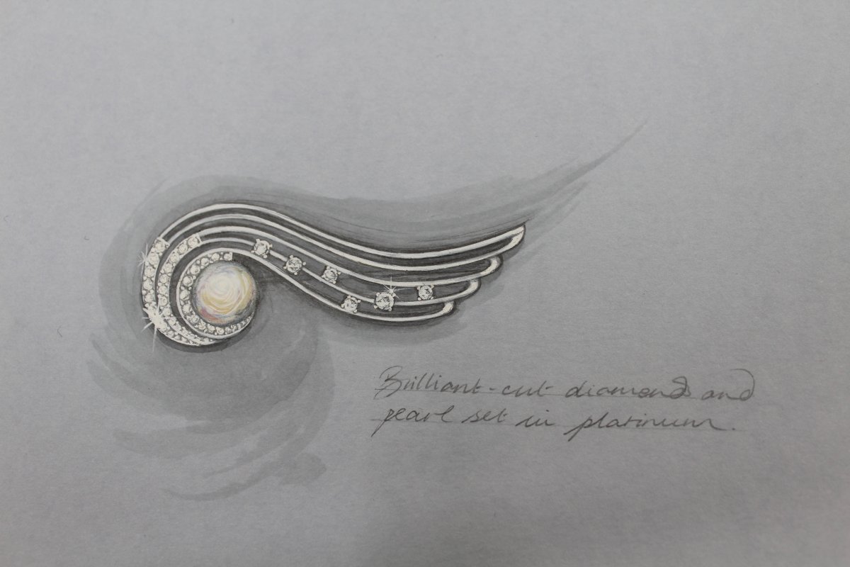 Here’s a look at the final sketch of the brooch produced by the artisans working at the David M. Robinson studio in Liverpool.