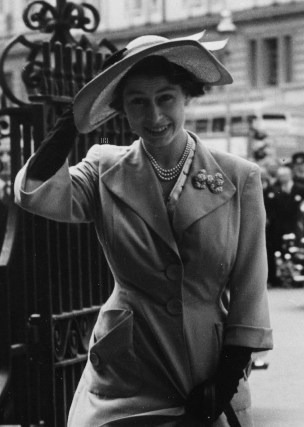Here, Princess Elizabeth wears the bracelet on her right wrist at Princess Anne’s christening in October 1950.