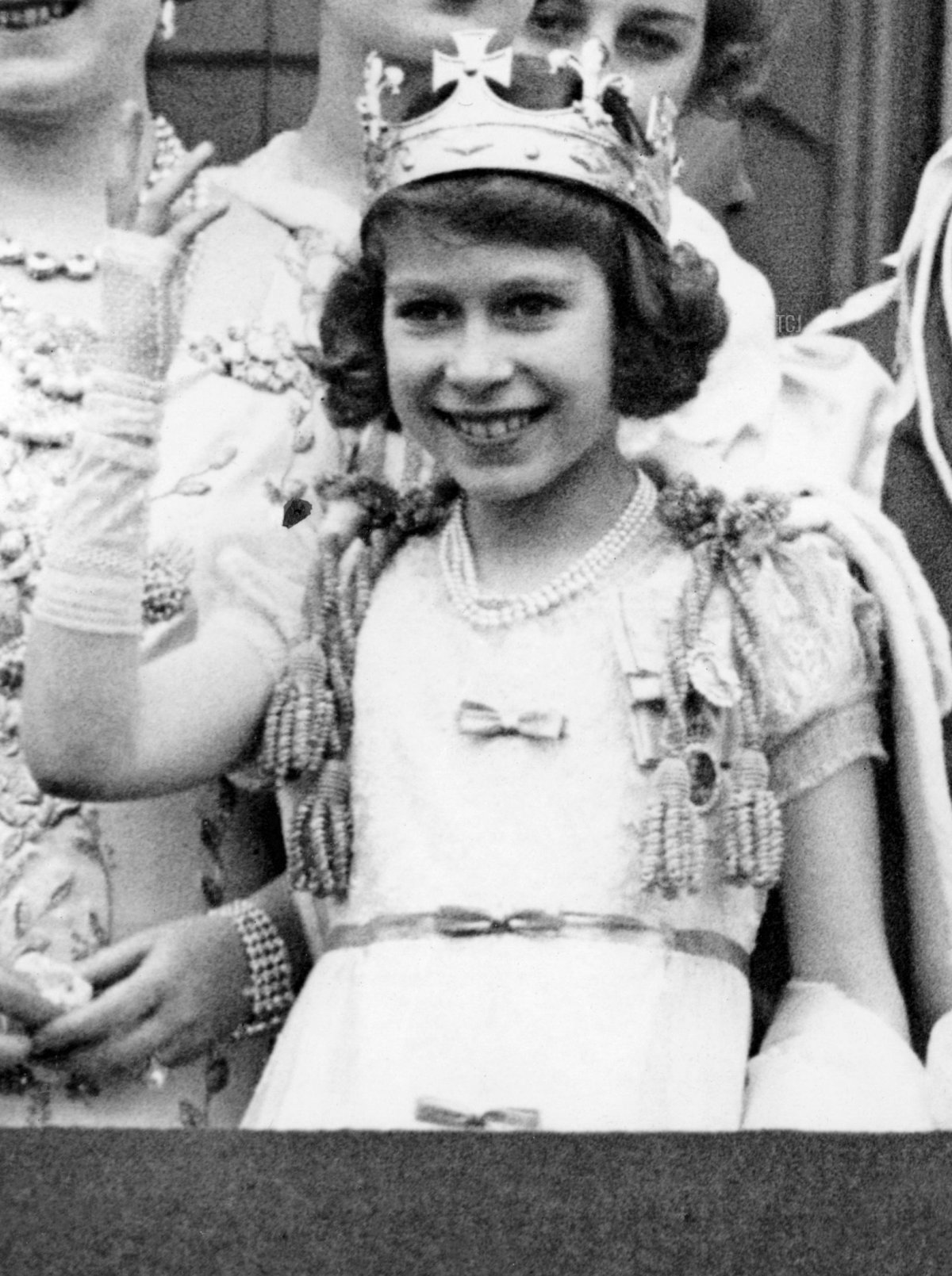 This is the silver-gilt coronet she wore. Garrard made one for both Princess Elizabeth and her younger sister, Princess Margaret.