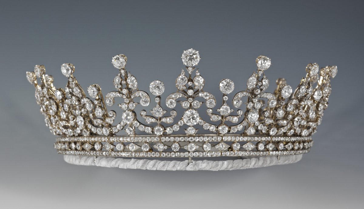 The Diamond Diadem is featured in the exhibition. It’s perhaps one of the most important royal jewels that will be on display. It was made ca. 1820 by Rundell, Bridge & Rundell for the coronation of King George IV. Though made for a man, it has been worn exclusively by women in every reign since then.