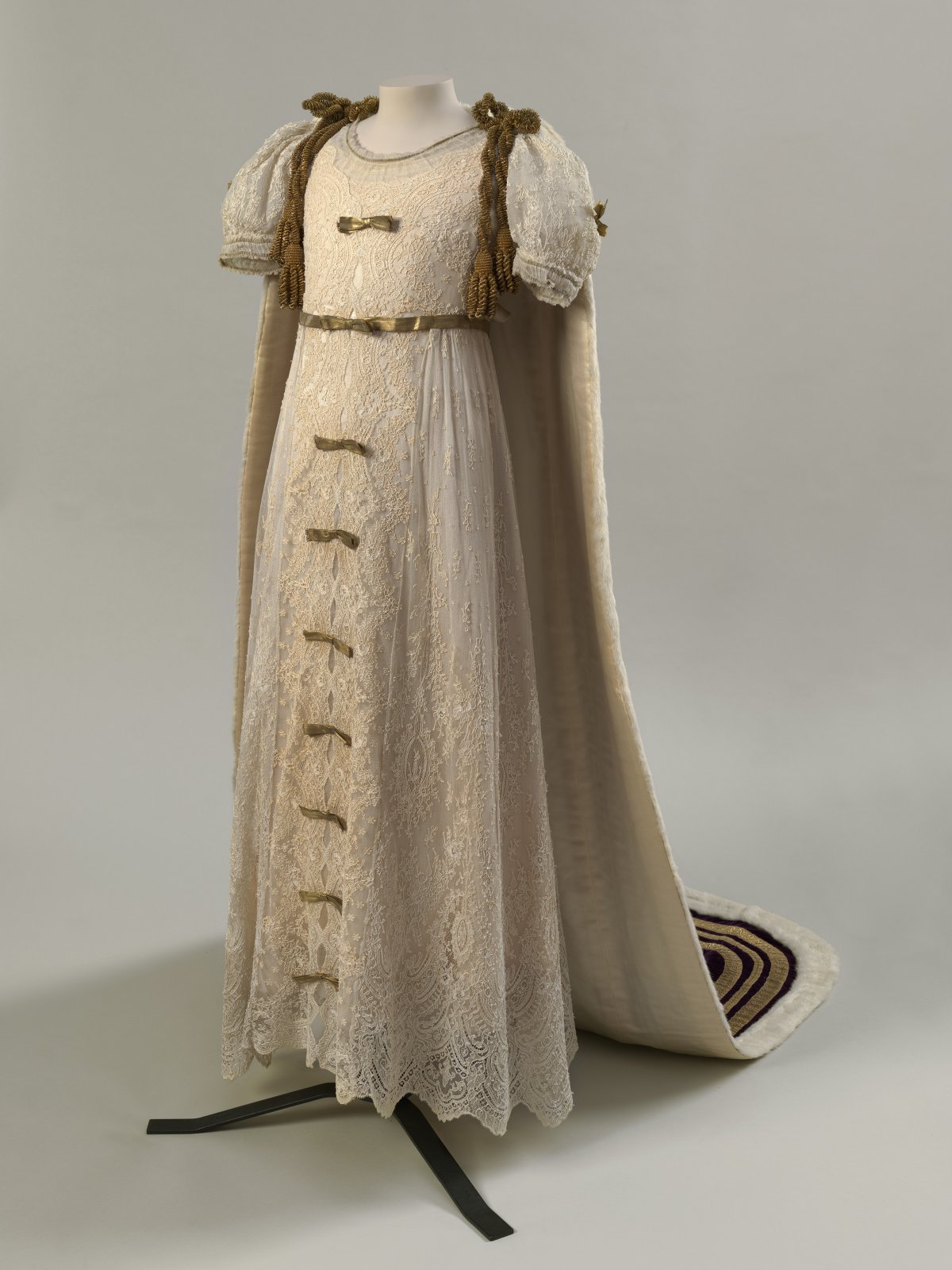 In fact, Princess Elizabeth’s entire ensemble from the 1937 coronation is on display. Here’s a look at her delicate lace dress.