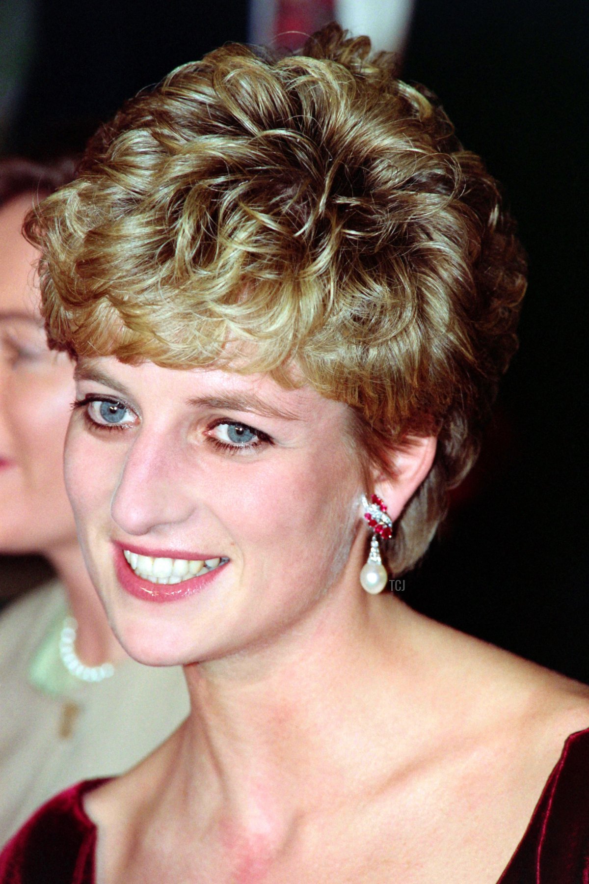 In November 1992, Diana wore the earrings with the pearl pendants and a red velvet dress for a performance of Paul McCartney’s classical Liverpool Oratorio at the Lille Congress Hall.