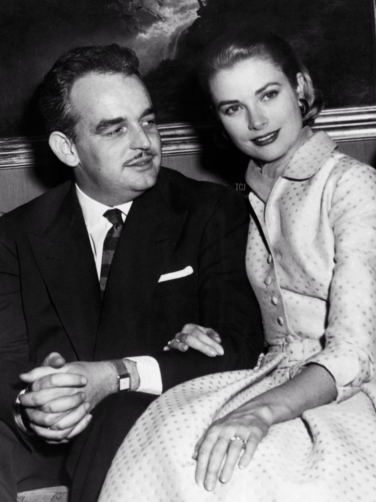 Rainier gave the ring to Grace over the Christmas holidays in 1955, and she wore it when they announced their engagement to the press in early January 1956 (pictured above). Later, Rainier would also give his bride a second engagement gift: an enormous, stunning ring set with a 10.5-carat, emerald-cut diamond, also made by Cartier. She famously wore that second ring during the filming of High Society that spring. Grace would wear both rings throughout her marriage.