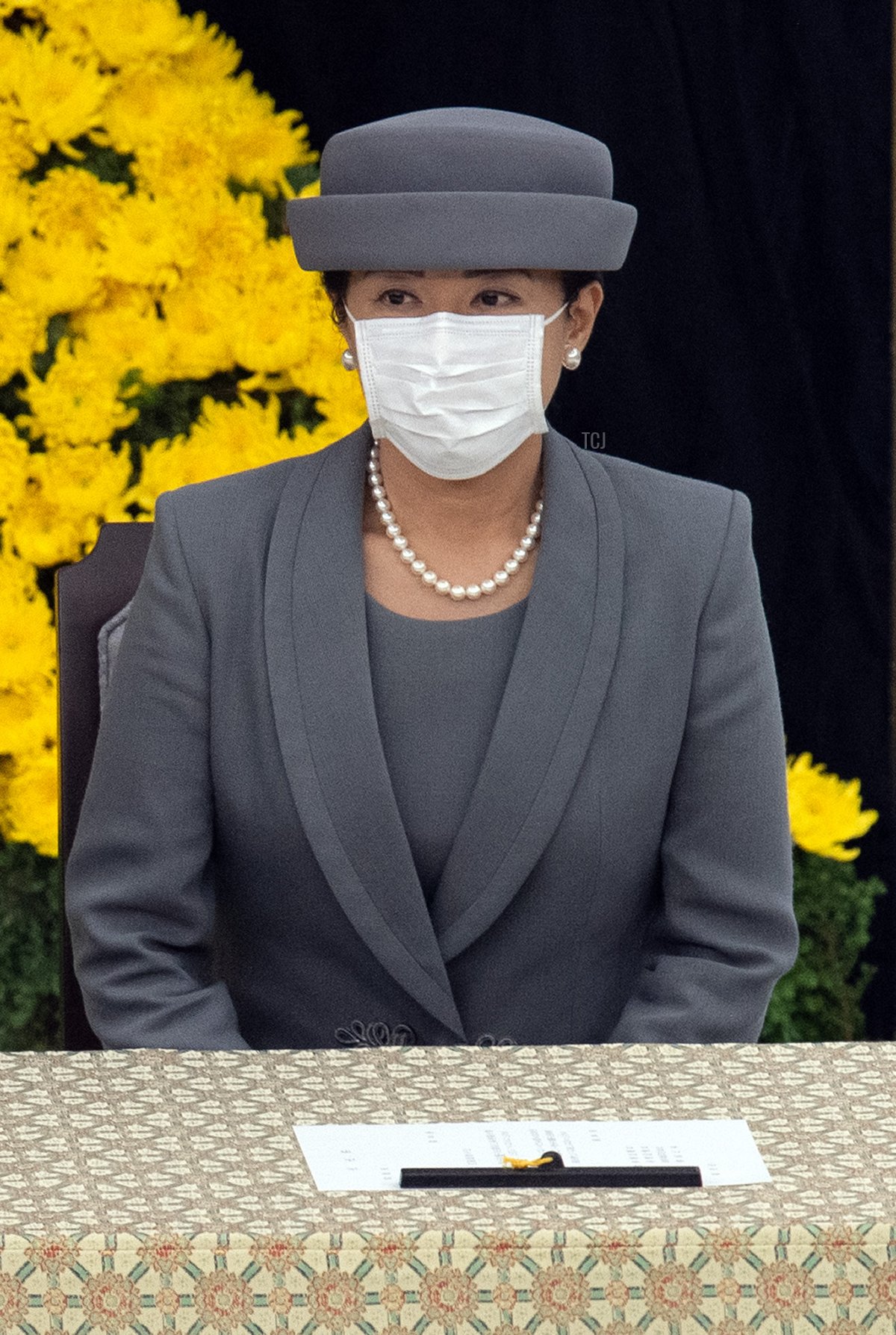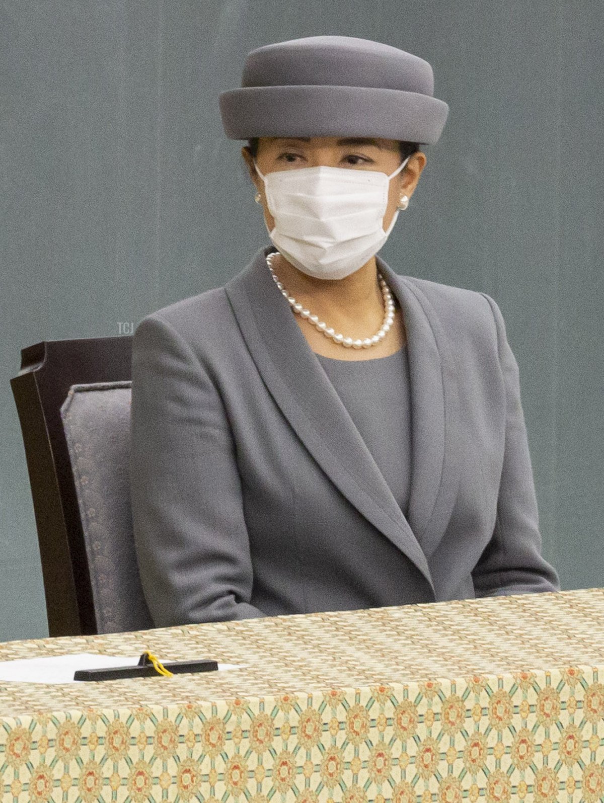 Masako is pictured here during the ceremony in August 2020, a scaled-back version held at the start of the pandemic.