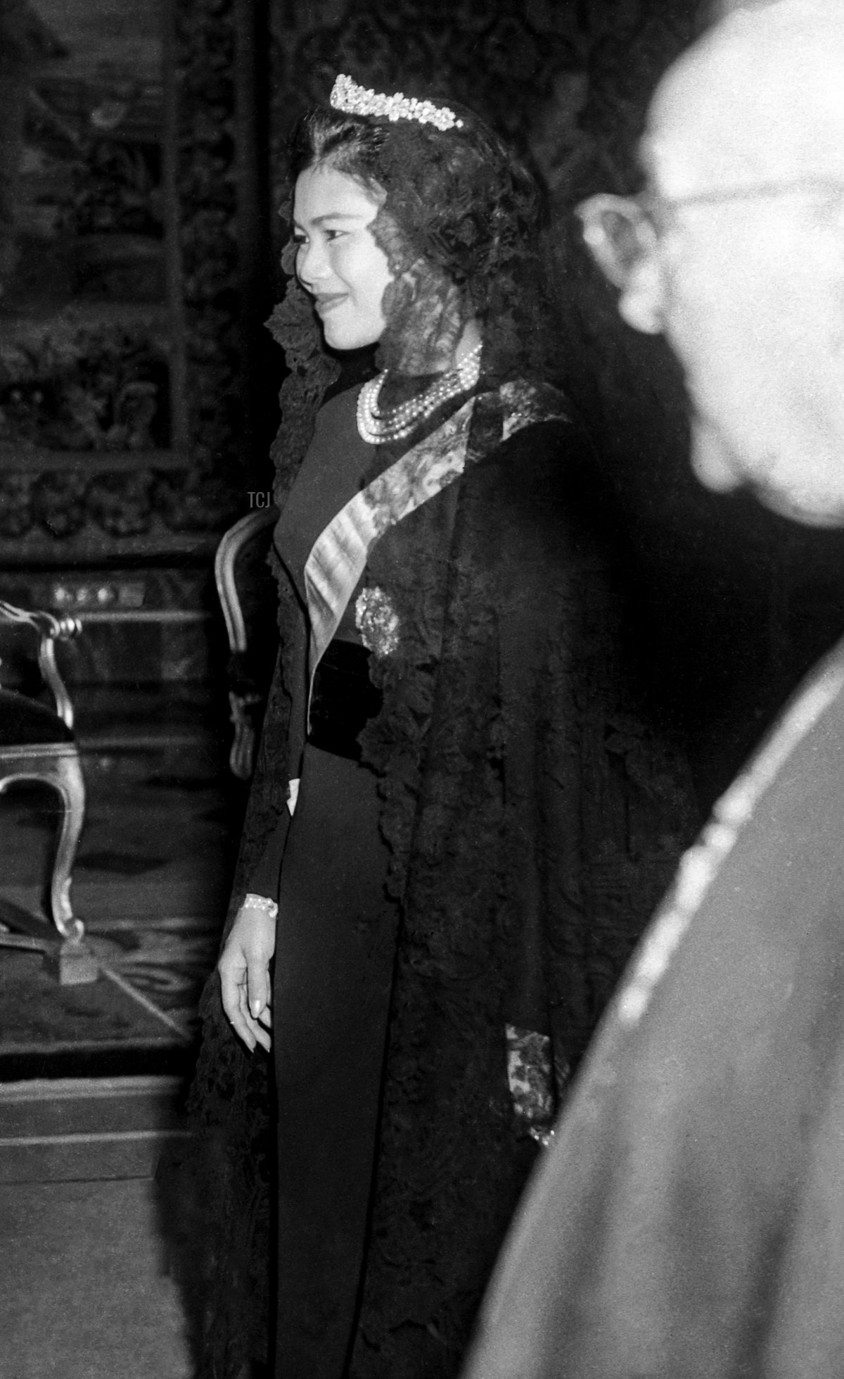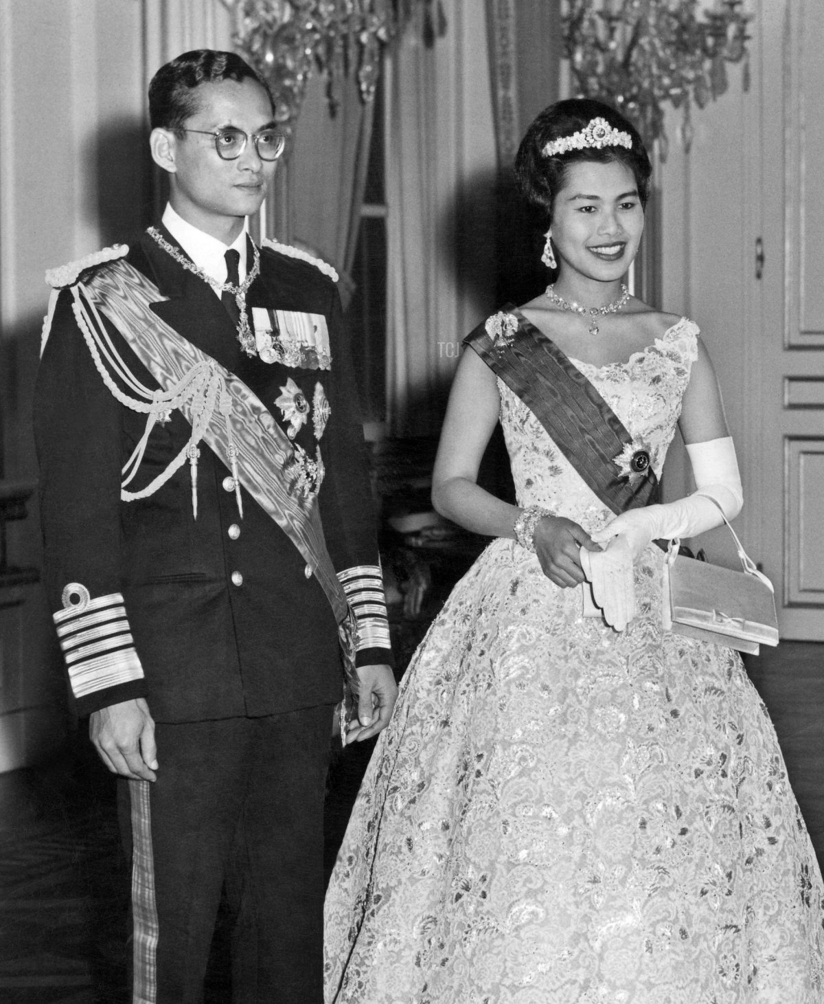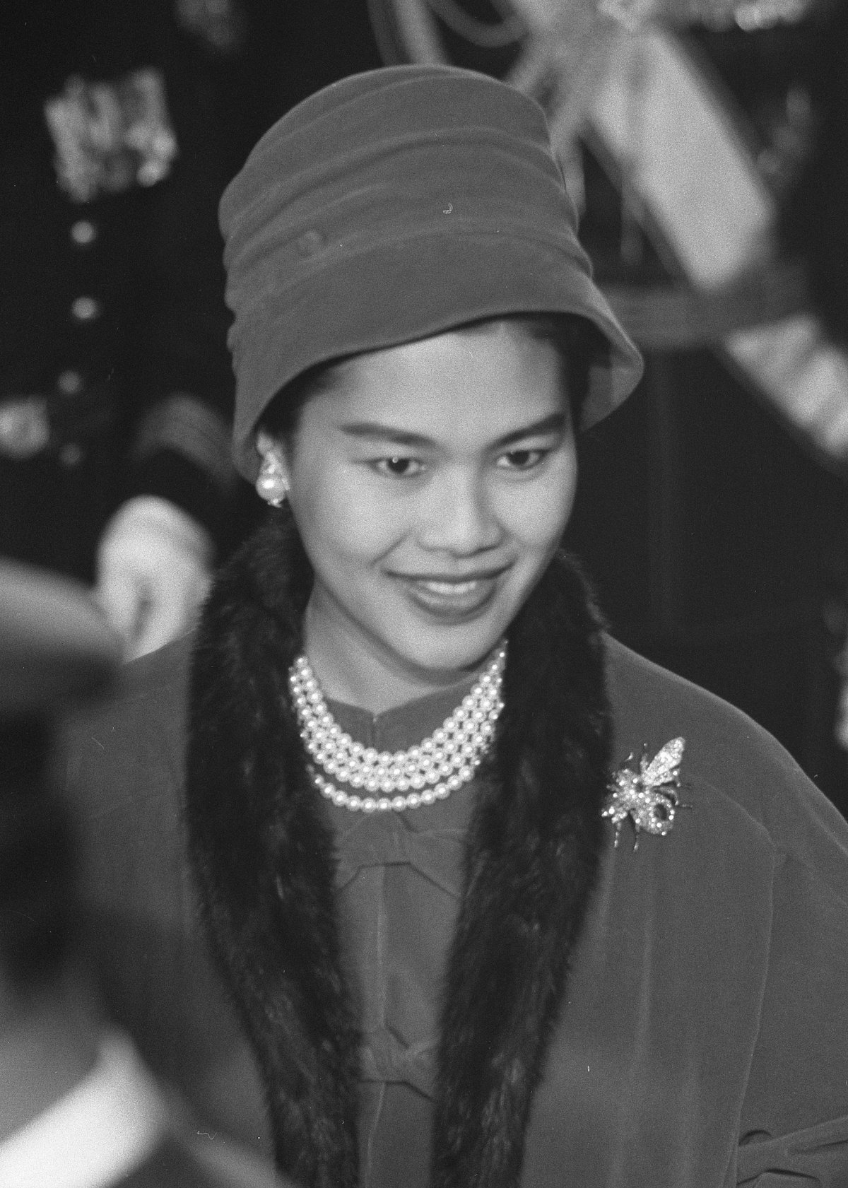 From the Vatican, the couple headed back to Switzerland before embarking on the final leg of their European tour. Sirikit brought out her floral bandeau once again for a state dinner hosted in Brussels by King Baudouin of the Belgians. Next, the couple traveled to France, where they had a night at the opera in Paris with President de Gaulle and attended a reception at the Palace of Versailles. Naturally, Sirikit also managed to fit in a visit to Pierre Balmain’s studio to view his autumn collection during their time in France. After the French visit’s end, Grand Duchess Charlotte hosted the couple for three days in Luxembourg.