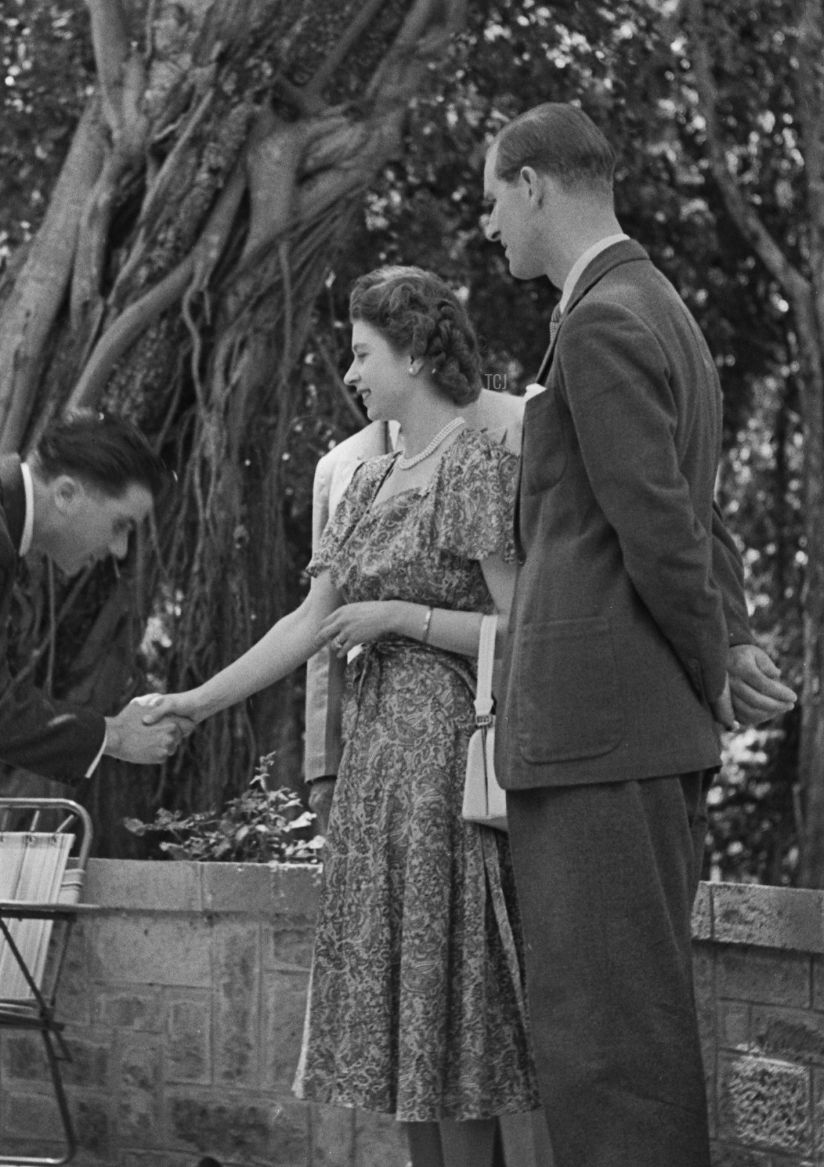 The clip brooches were, ultimately, the last jewels that Princess Elizabeth was pictured wearing in public before her sudden accession to the throne in February 1952. She and the Duke of Edinburgh were in Kenya at the start of a planned Commonwealth tour, and for their arrival at Sagana Lodge on February 5, Elizabeth wore the clips pinned at the corners of the neckline of her dress. If you look closely, you’ll be able to see them in this photograph.