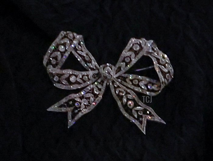 Marina was pictured often in the brooch for gala occasions. She even pinned it to her gown for the 1937 coronation of King George VI and Queen Elizabeth, her brother- and sister-in-law. Marina wore the diamond bow again several years later for the coronation of her niece, Queen Elizabeth II, in 1953. After Marina’s death, the brooch was sold by her children, reportedly to help pay death duties, and acquired by the American collector Jayne Wrightsman.