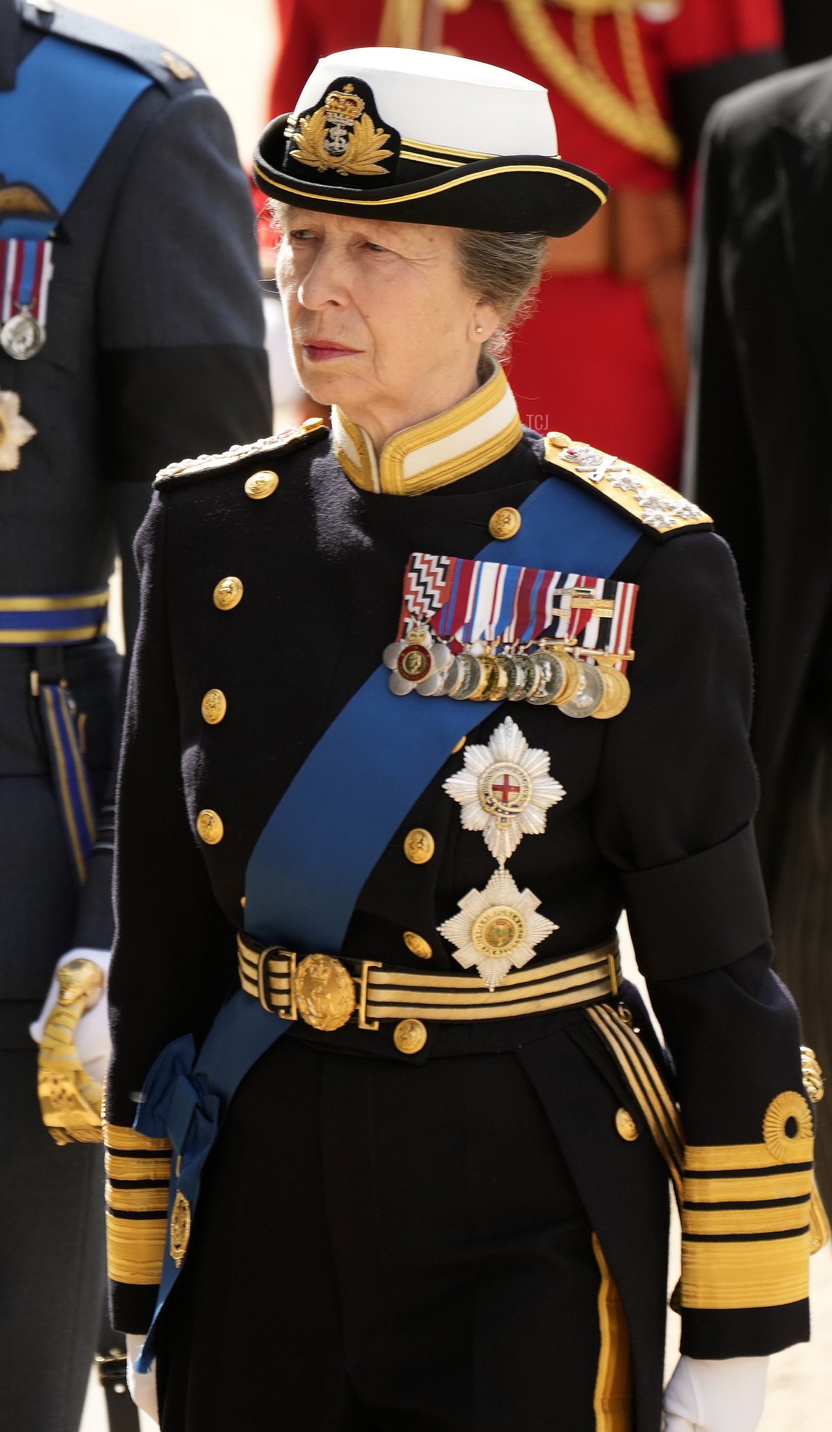 The Princess Royal was in uniform as part of the procession today, wearing only a simple pair of gold stud earrings.