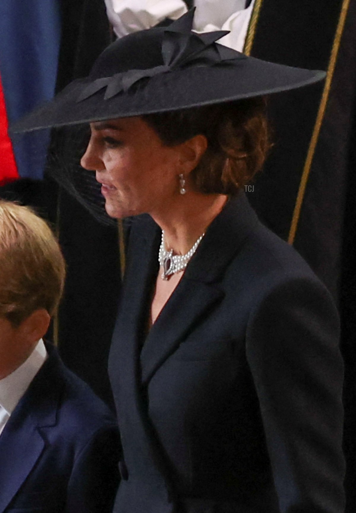 The Princess of Wales wore familiar pearl pieces for the state funeral—all of which are believed to have been loaned to her by the late Queen.