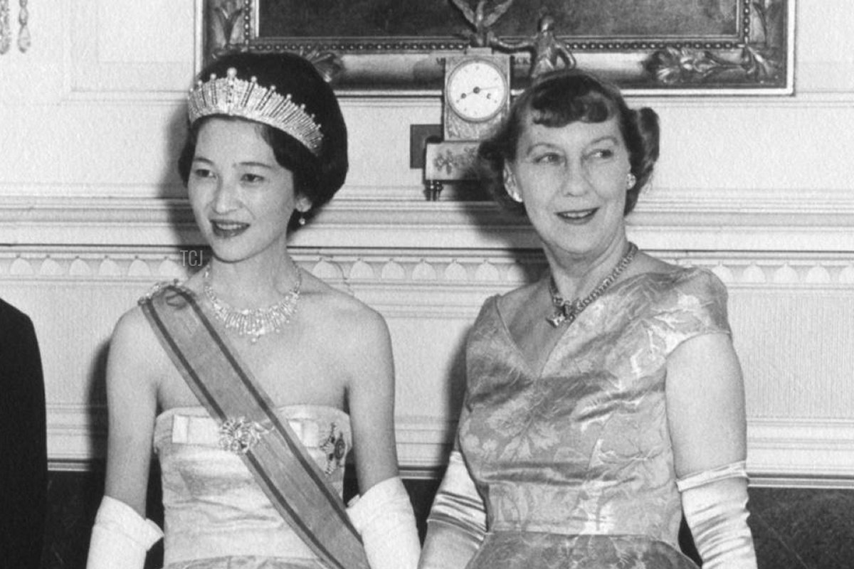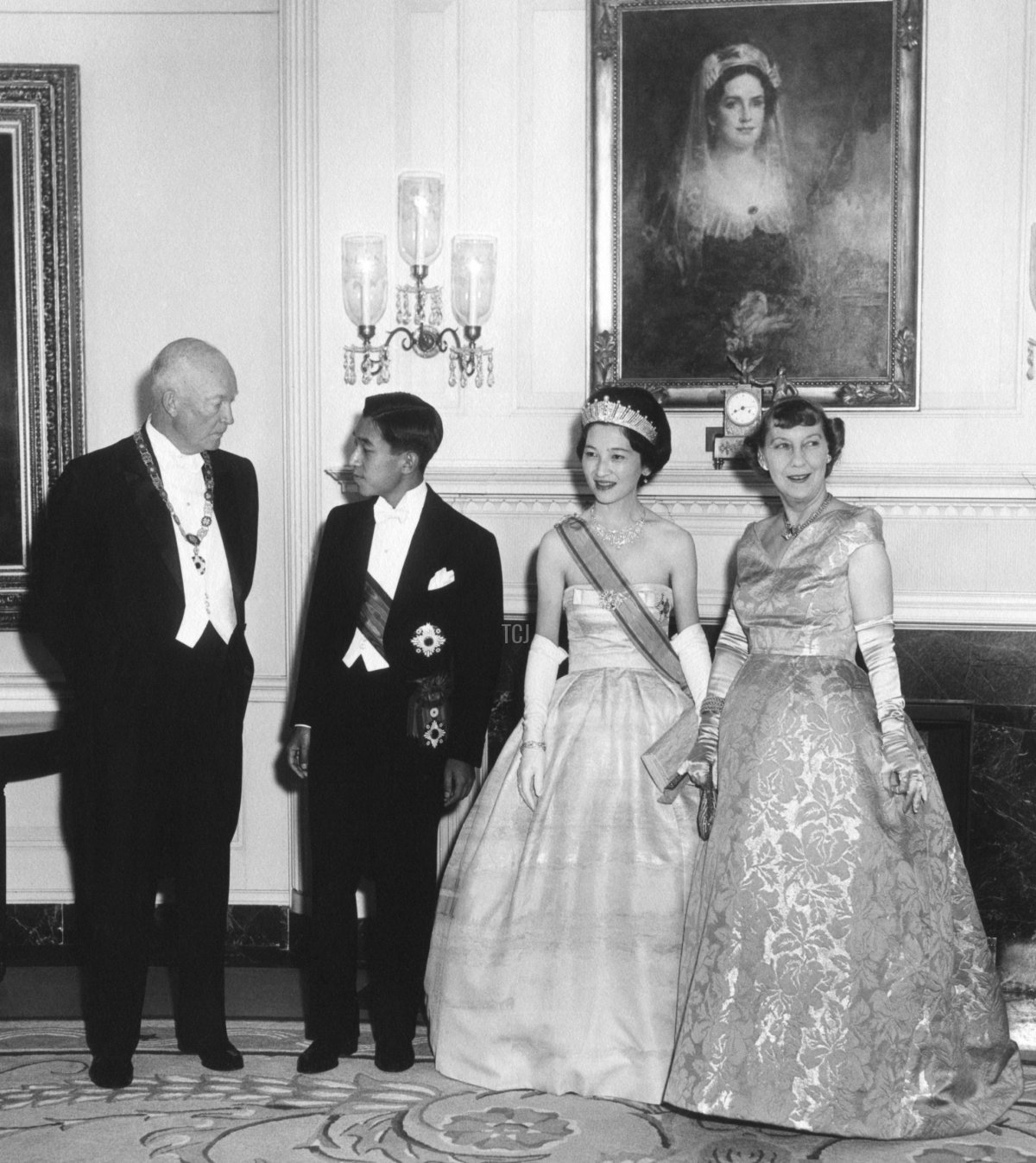 Michiko posed elegantly with Mrs. Eisenhower before the banquet, but the strain of the lengthy tour had already begun to take a major toll on the crown princess. She’d had to take numerous breaks during several public appearances and even stayed back in the couple’s guest accommodations during part of the visit to Washington. The press took notice when she left the White House state dinner earlier than planned. One person connected with the American side of the planning for the trip told a reporter, “Mostly she’s just tired.” Another added, “It’s fatigue, I’m sure. You know how these visits are. But for heaven’s sake, don’t quote me.”