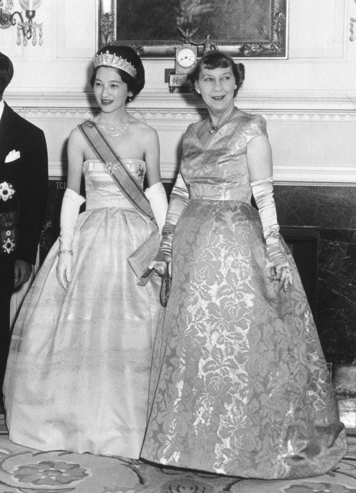 Crown Princess Michiko would go on to wear the sunburst tiara often in the ensuing years before handing it over in the 1990s to Masako. Notably, Michiko wore it for another encounter with an American president: a state dinner in Tokyo during a visit by the Reagans in November 1983.