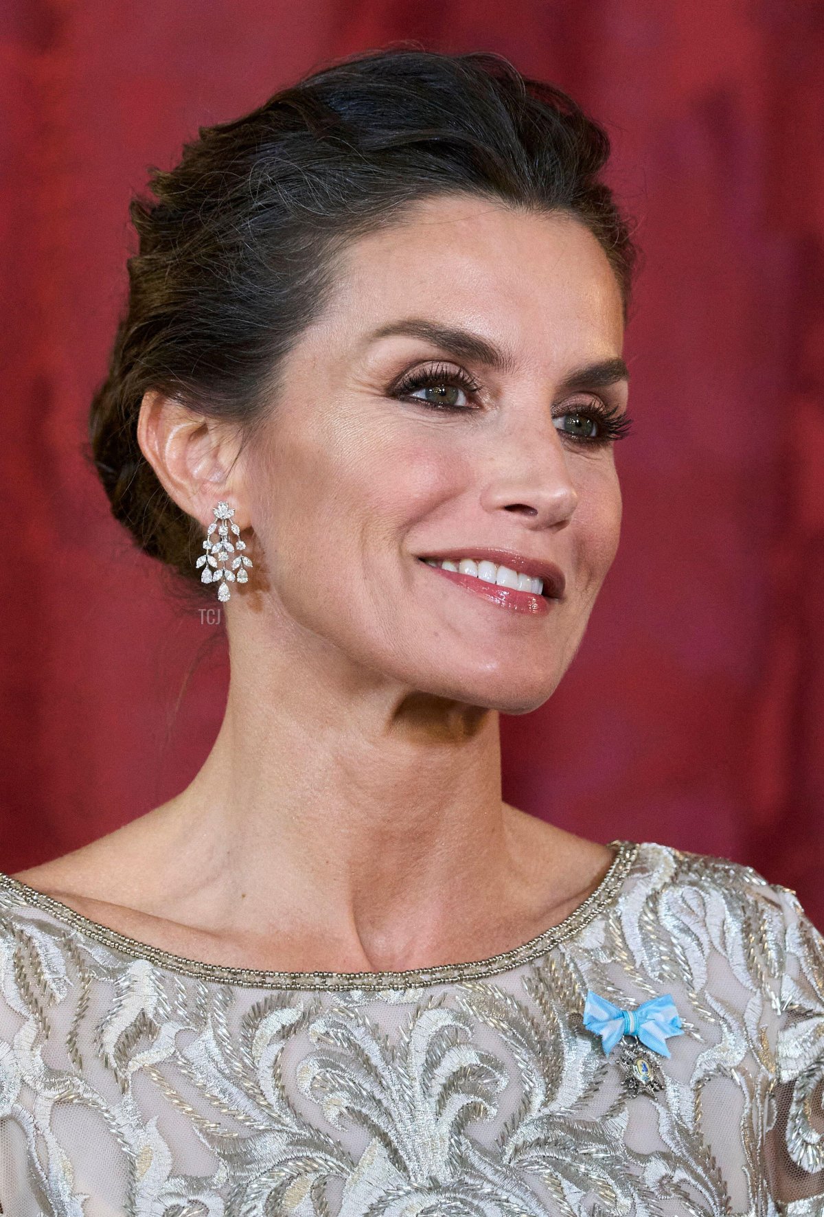On that occasion, Letizia accessorized with Queen Ena’s diamond earrings and a diamond floral brooch.