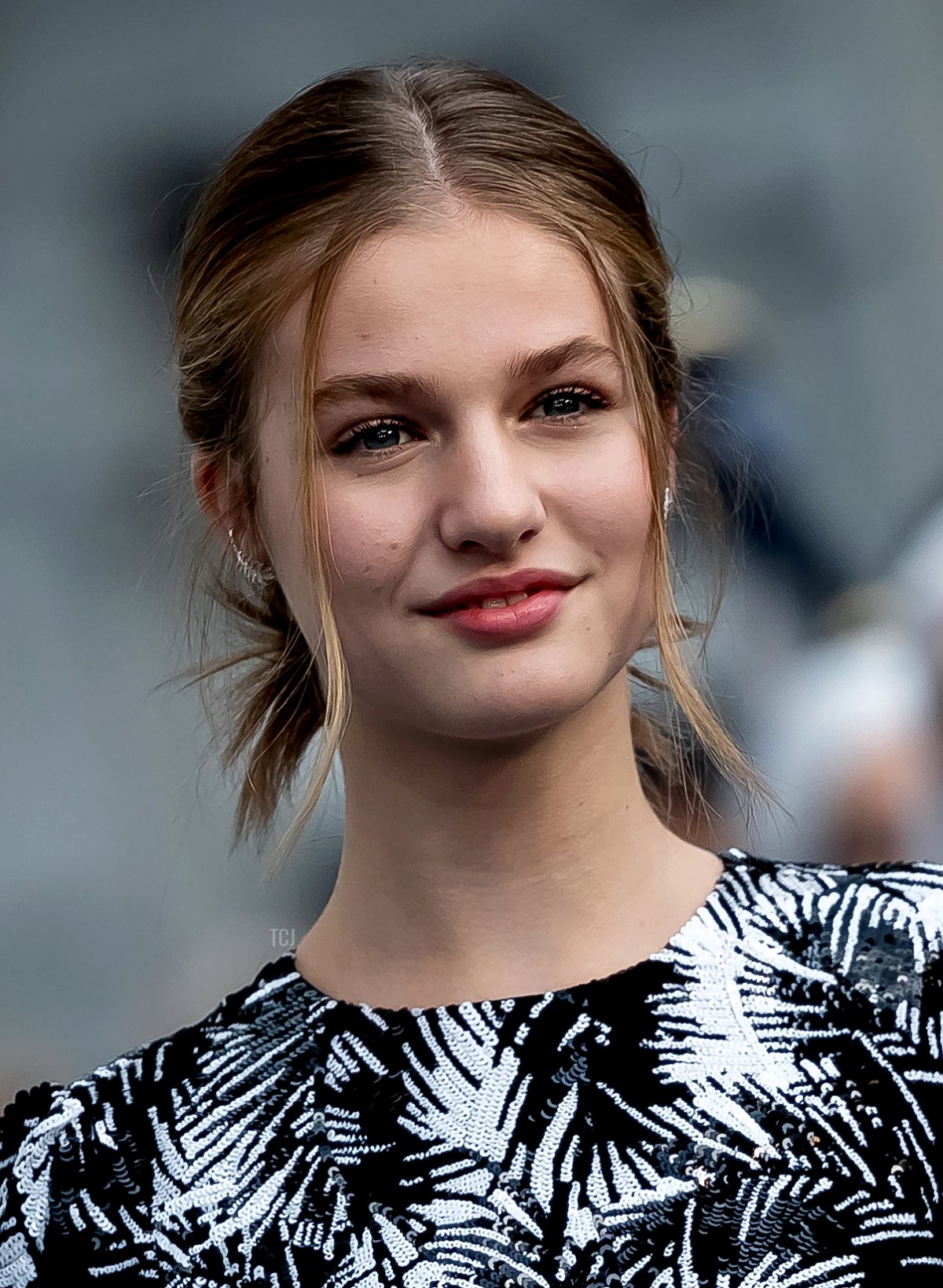 Leonor also wore bold black and white for the ceremony. Her dress features a palm print in black and white sequins.