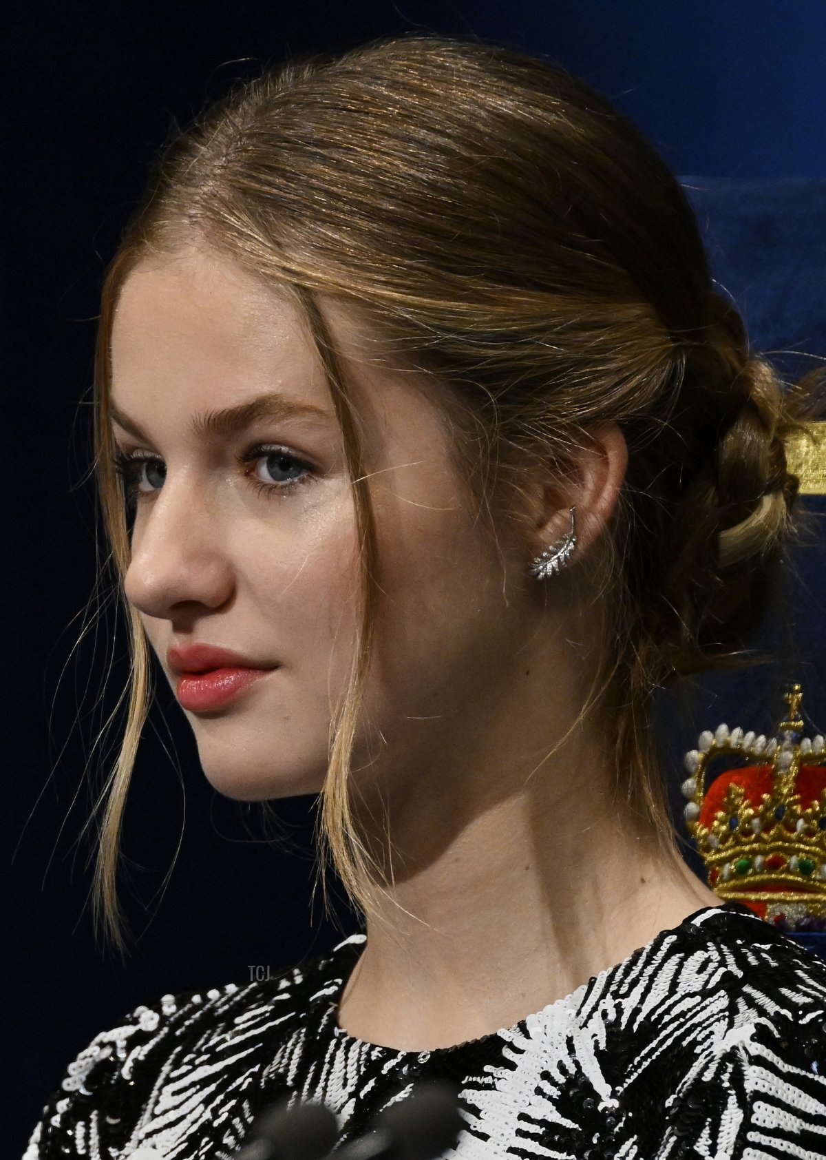 Infanta Sofia also wore a dark dress covered in sequins for the ceremony, but again, no jewelry just yet.