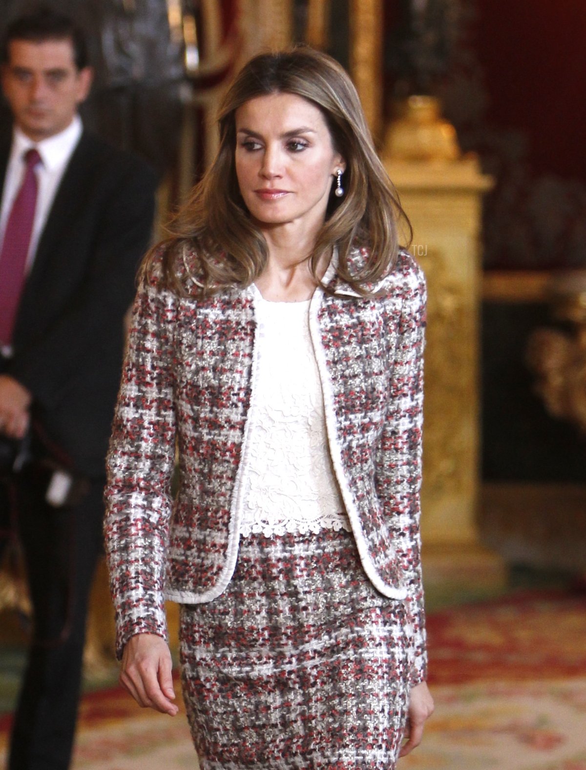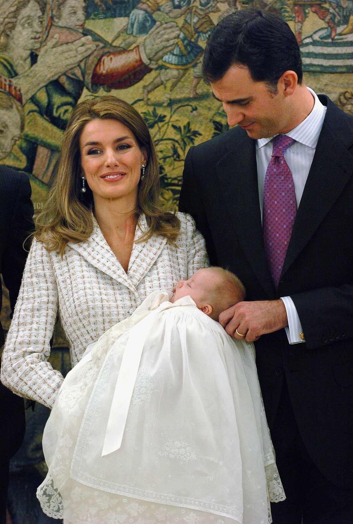 Letizia has been wearing the earrings for more than a decade, and she’s chosen them for some very important family occasions. Here, she wears them for the baptism of Princess Leonor at the Royal Palace in Madrid in January 2006.