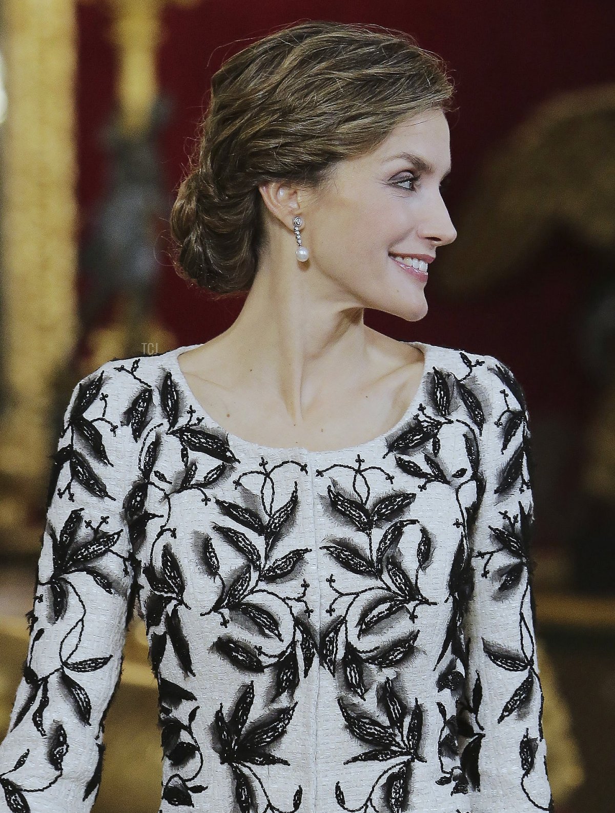 The details are also quite clear in this photograph, showing Letizia wearing them with the same black-and-white ensemble at the Accion Magistral in Madrid in December 2017.