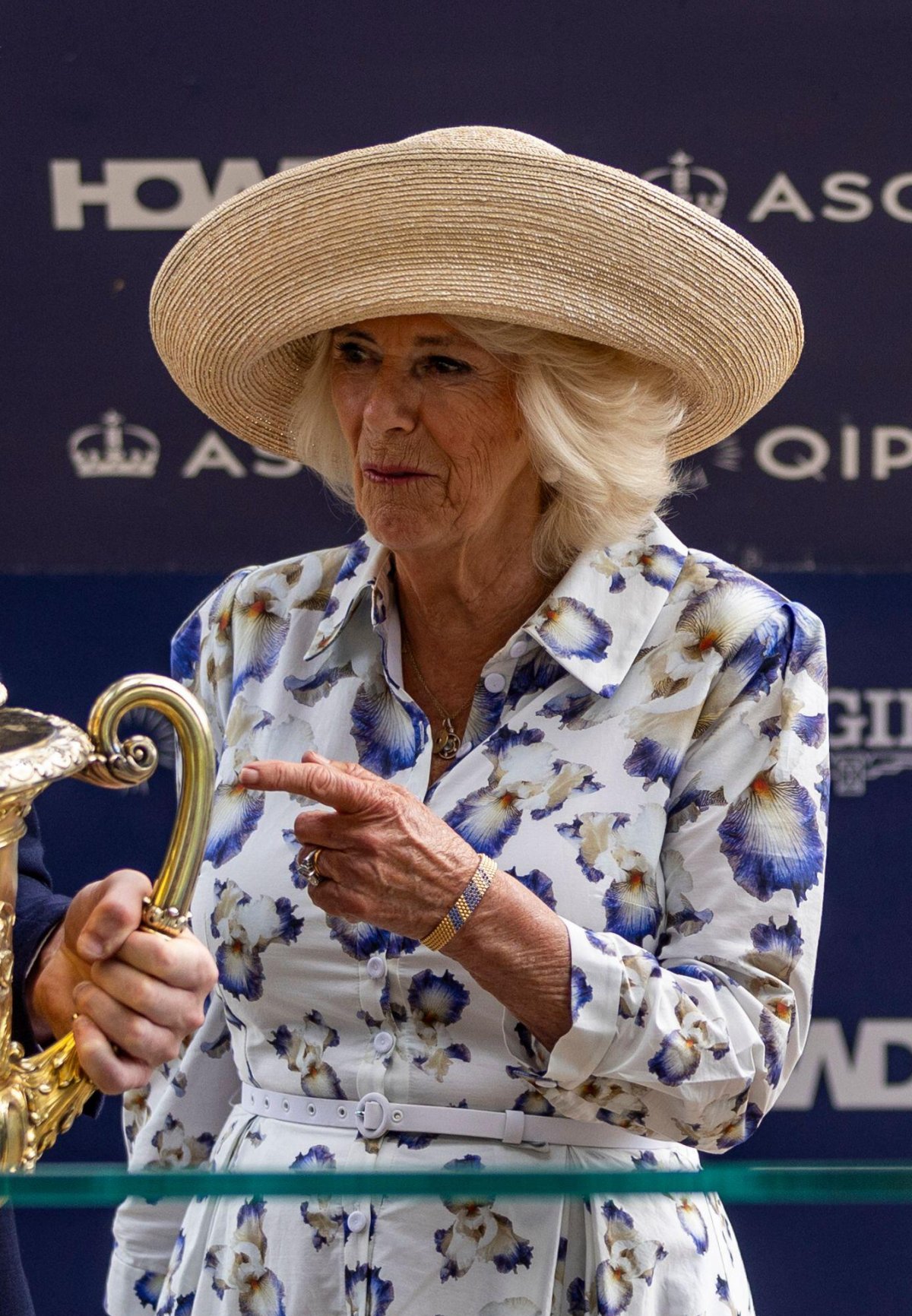 In the summer of 2024, Camilla debuted a new bracelet from the firm: a yellow gold and sapphire bangle from the Perlée line. She wore the bracelet to attend King George Day at Ascot Racecourse in July.