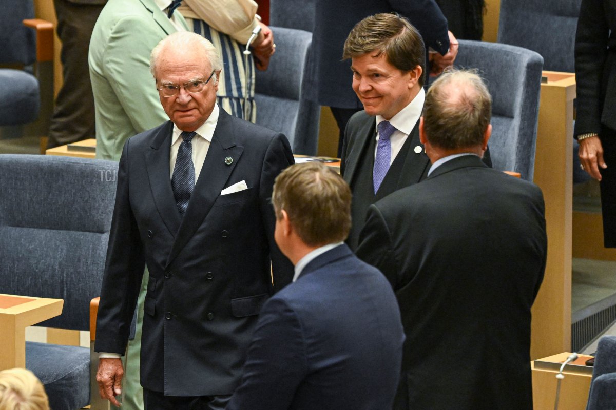 King Carl XVI Gustaf was joined at Parliament House for the ceremony by Queen Silvia, Crown Princess Victoria, Prince Daniel, Prince Carl Philip, and Princess Sofia.