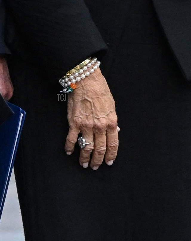Here’s a closer look at some of those jewels, including a two-stranded pearl bracelet and a gold Cartier Love Bracelet.