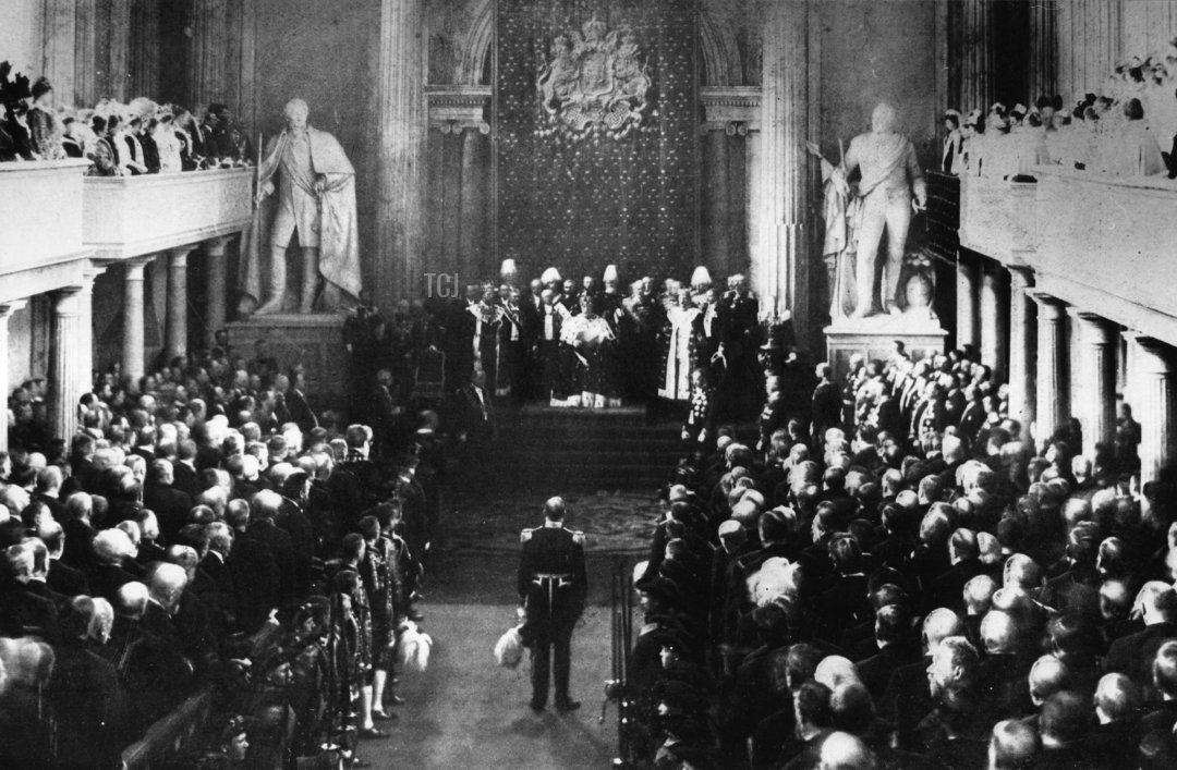 Today, the opening of the Riksdag is a business-like event, part of the regular functioning of Sweden’s legislative government. But decades ago, the event was much grander, more on the scale of the State Opening of Parliament in Britain during the reign of Queen Elizabeth II. The event was previously held in the throne room at the Royal Palace in Stockholm, with the monarch reading a speech from the throne and members of the royal family looking on. This photograph was taken during the event in June 1905, with King Oscar II on the throne. You’ll spot the women of the royal family in court dress in a balcony on the right side of the photograph.
