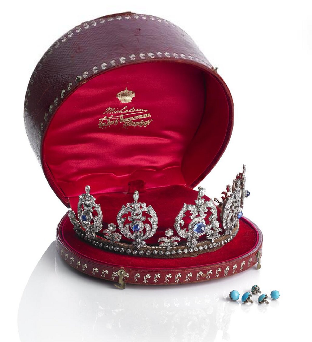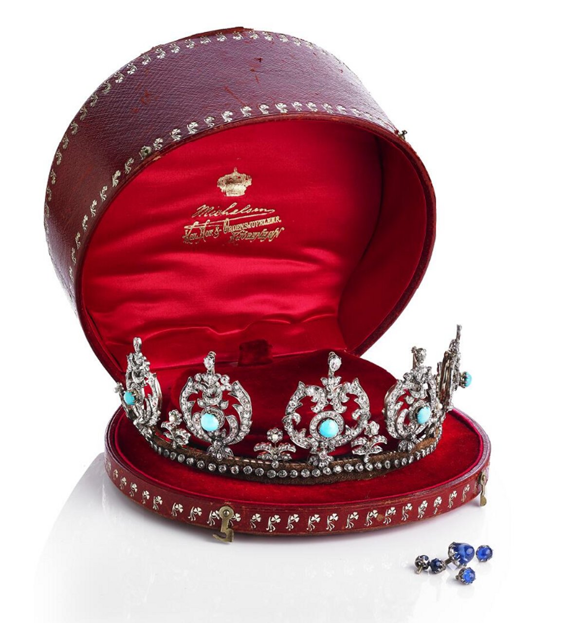 The tiara, along with both its sapphire and turquoise ornaments, will be auctioned at Bruun Rasmussen in Copenhagen on Thursday, December 1, 2022. The estimate for the jewel is set at 600,000–800,000 DKK (about $84,000-112,000 USD at today’s exchange rates).