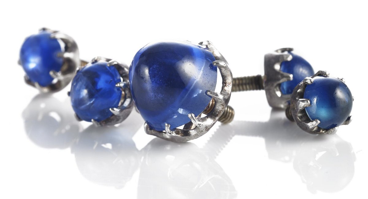 The two sets of alternate ornaments can be affixed to and removed from the tiara via screw mechanisms. Here’s a closer look at the cabochon sapphires. According to the lot notes, the sapphires are natural cabochons from Ceylon (Sri Lanka).