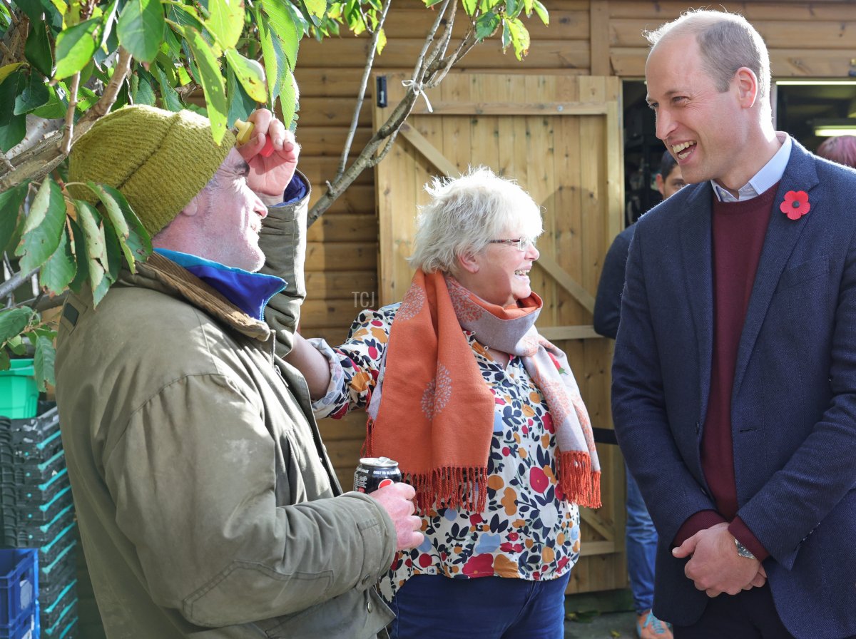 Here, Prince William speaks with one of the local people who uses the services of The Rainbow Centre, an organization that offers support for those in need in Scarborough.