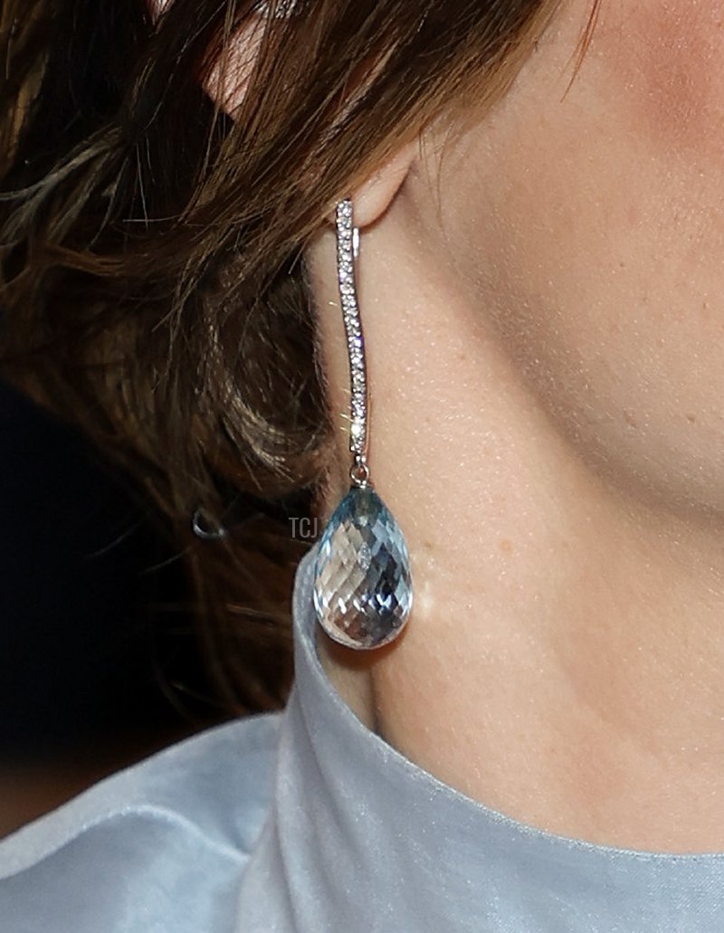 And now we’ve got blue gemstone toppers, too. They coordinate with the diamond and blue gemstone drop earrings that Sofia wore for the ceremony as well.