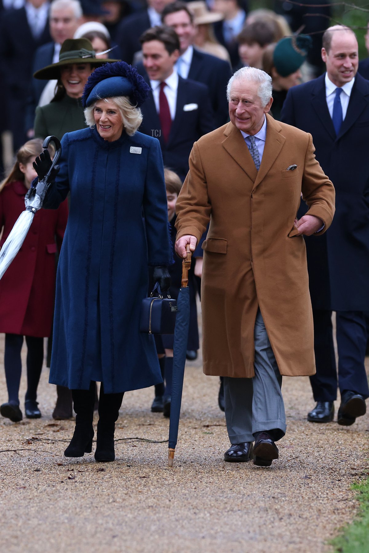 King Charles III and Queen Camilla led a large contingent of family members—children, grandchildren, siblings, nieces and nephews, and cousins—for the annual walk to church at St. Mary Magdalene near the Sandringham estate on Christmas Day.