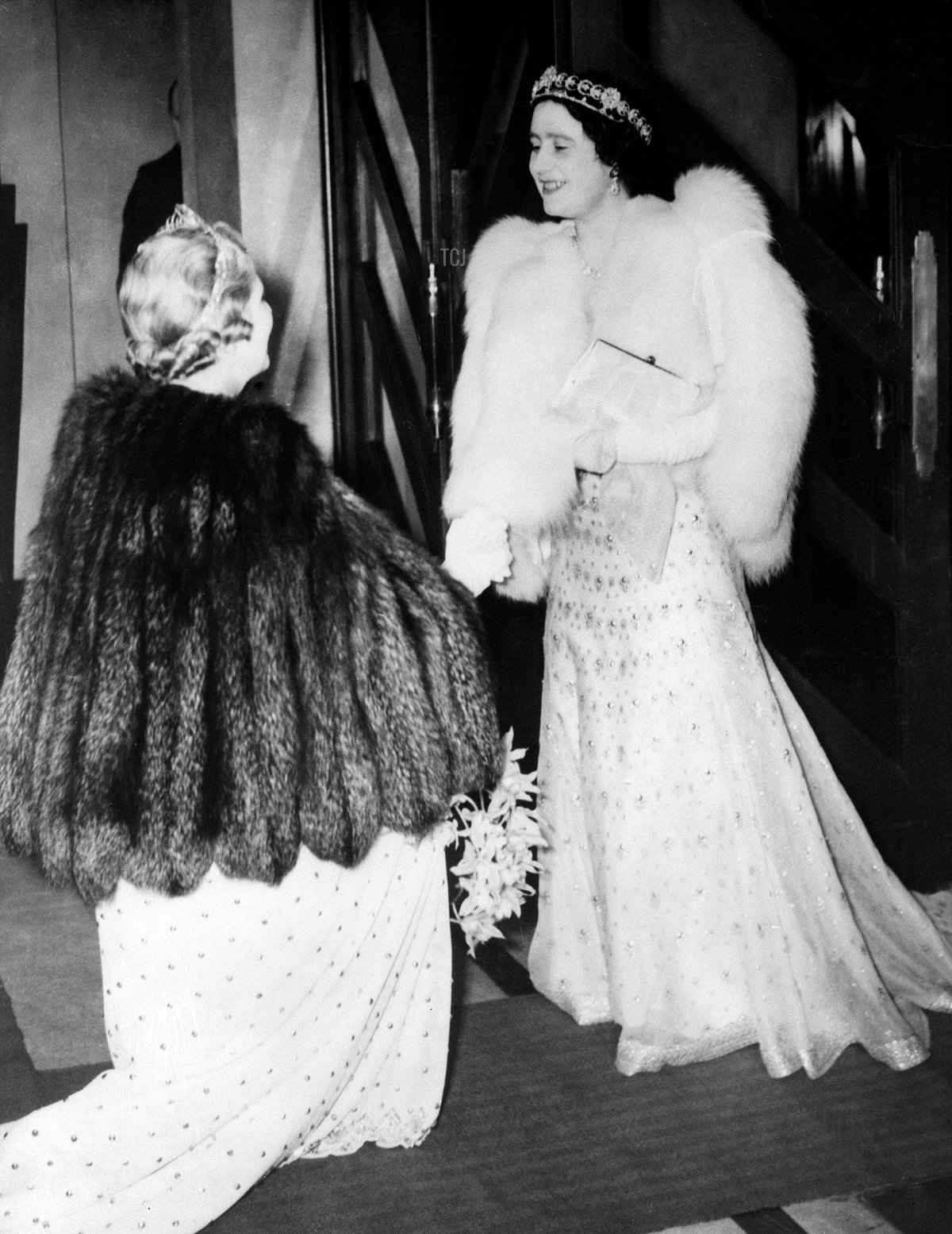 Queen Elizabeth made a handful of appearances in the Teck Crescent Tiara over the years. Most of them appear to have taken place before the outbreak of World War II. In the spring of 1939, she took the tiara with her on the extensive royal tour of Canada and the United States. She wears the tiara above for a dinner at Chateau Laurier in Ottawa that May.