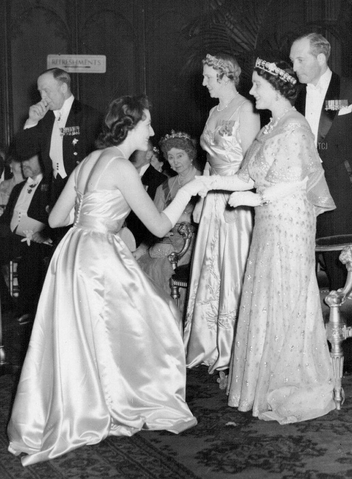 And here, in July 1939, she wears the tiara once more for a gala event. This time, she paired the jewel with Queen Alexandra’s Wedding Necklace. But for the most part, the tiara was relegated to the recesses of Elizabeth’s jewelry box and rarely worn once tiaras were brought out again after the war. In 2001, she did agree to loan the jewel to the landmark tiara exhibition mounted at the Victoria & Albert Museum, along with two other rarely-seen pieces from her collection (the Strathmore Rose Tiara and the Delhi Durbar Tiara).