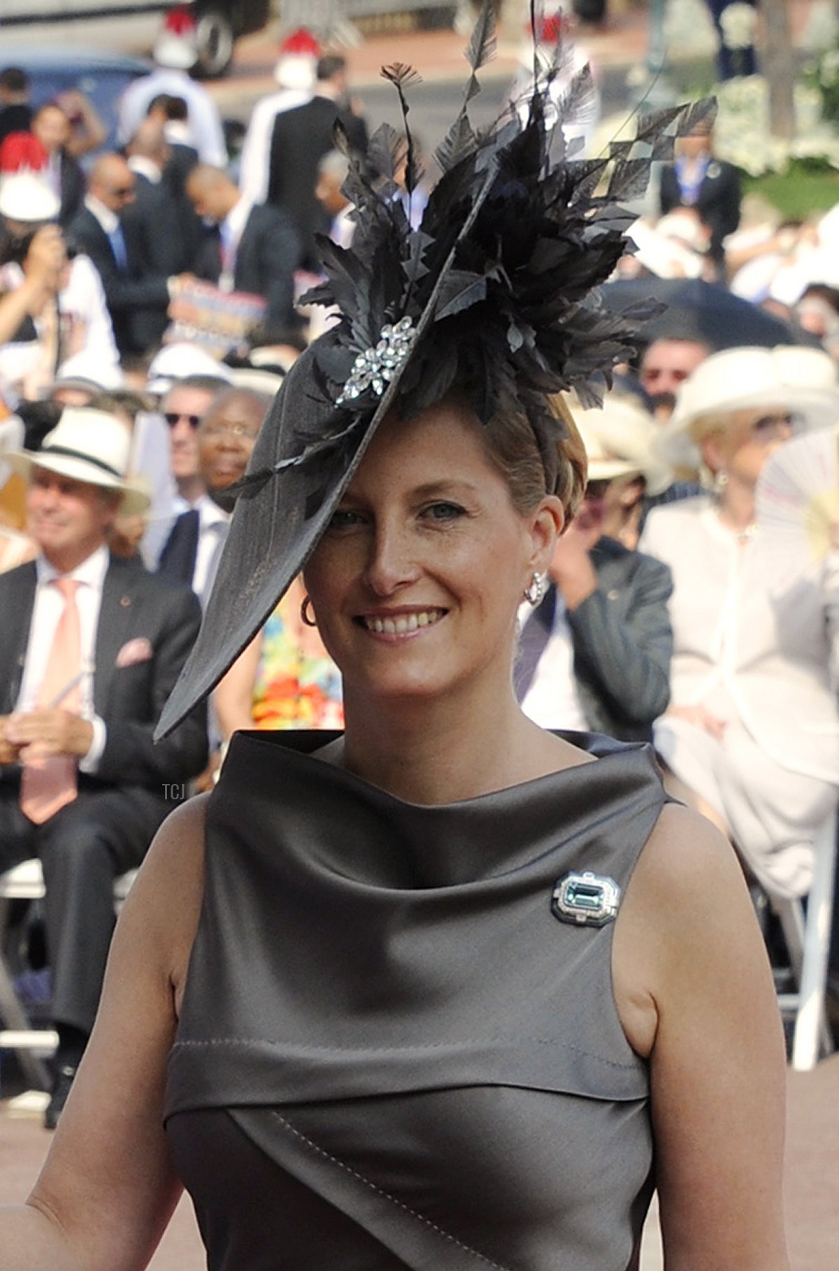 In 2006, Sophie wore the new tiara as a necklace at a charity gala for Childline. Coincidentally, Prince Albert II of Monaco was also at this gala. To my knowledge, there’s never been a suggestion that any of Sophie’s jewelry is connected to the Grimaldis, but her aquamarines do pop up at events linked with the Monegasque princely family with some regularity.