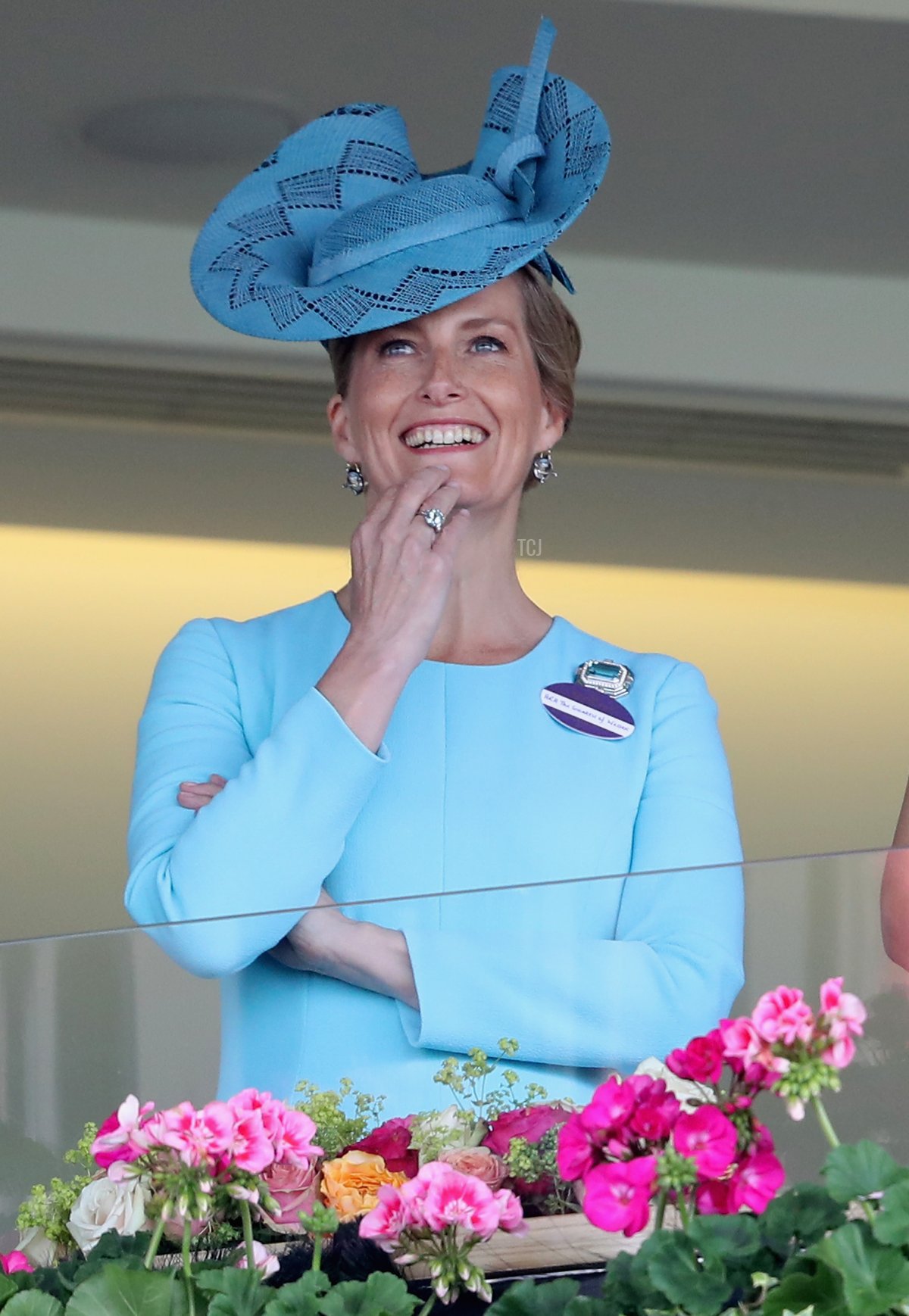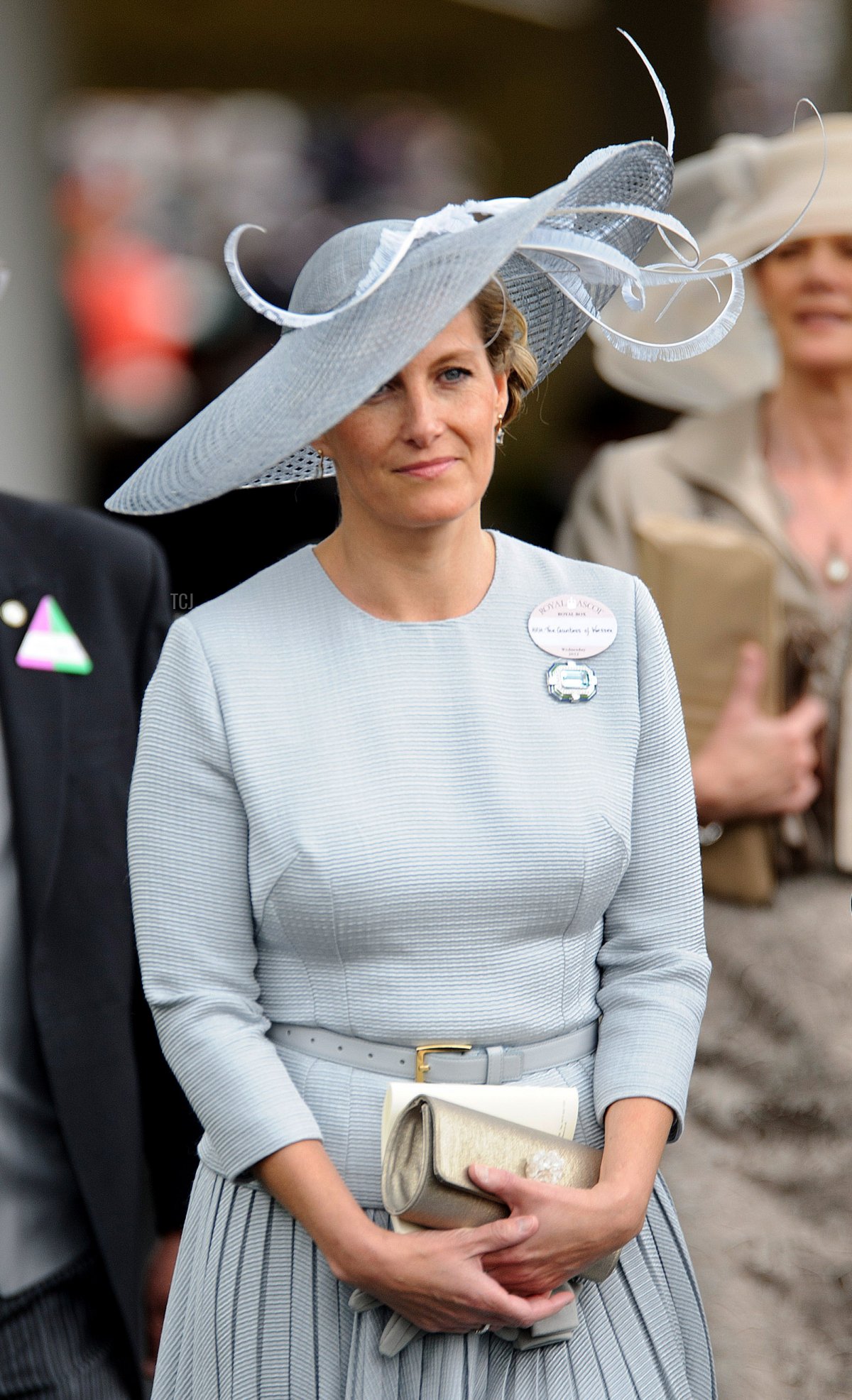 Sophie wears the gorgeous aquamarine brooch often. It pops up especially frequently at Royal Ascot. This outing took place at the races in the spring of 2012.