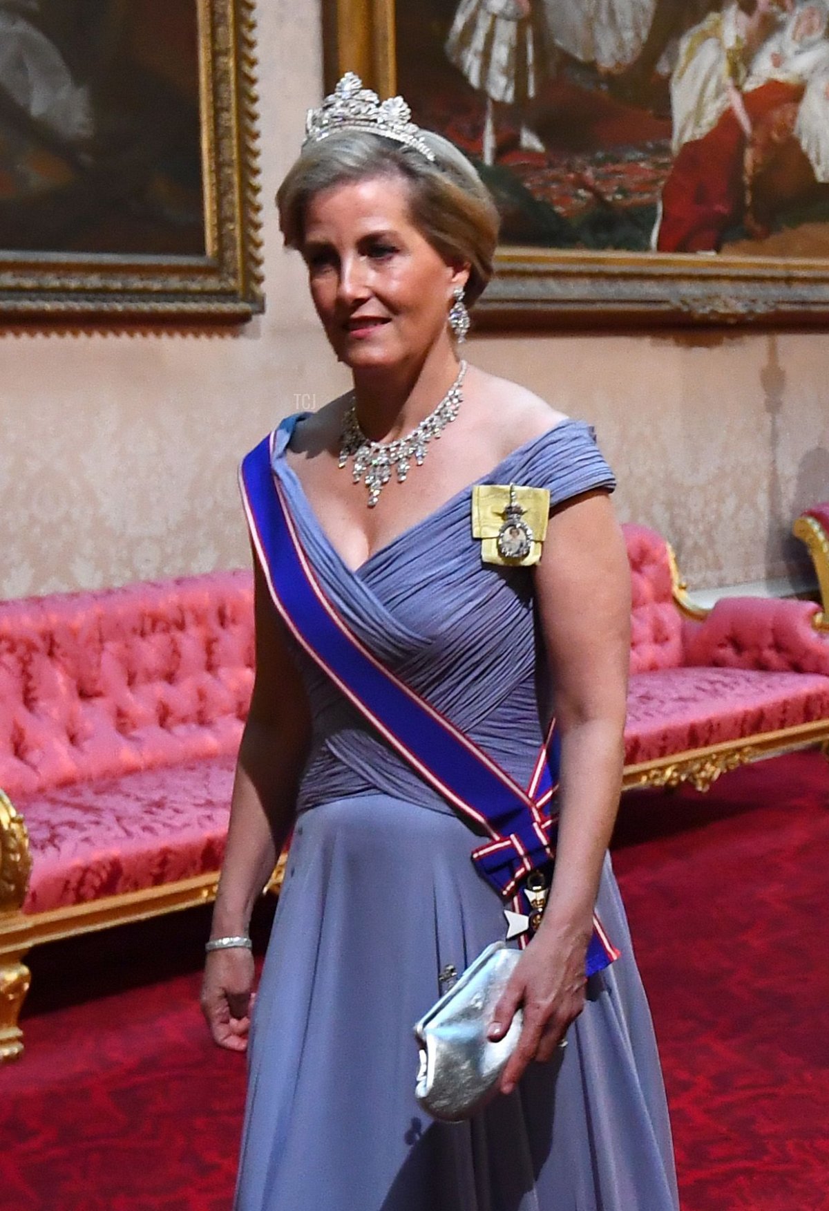 In 2019, the year that the couple celebrated their 20th wedding anniversary, Sophie debuted a new version of the tiara, which had been redesigned slightly. The new piece features rearranged anthemions and a more substantial base.