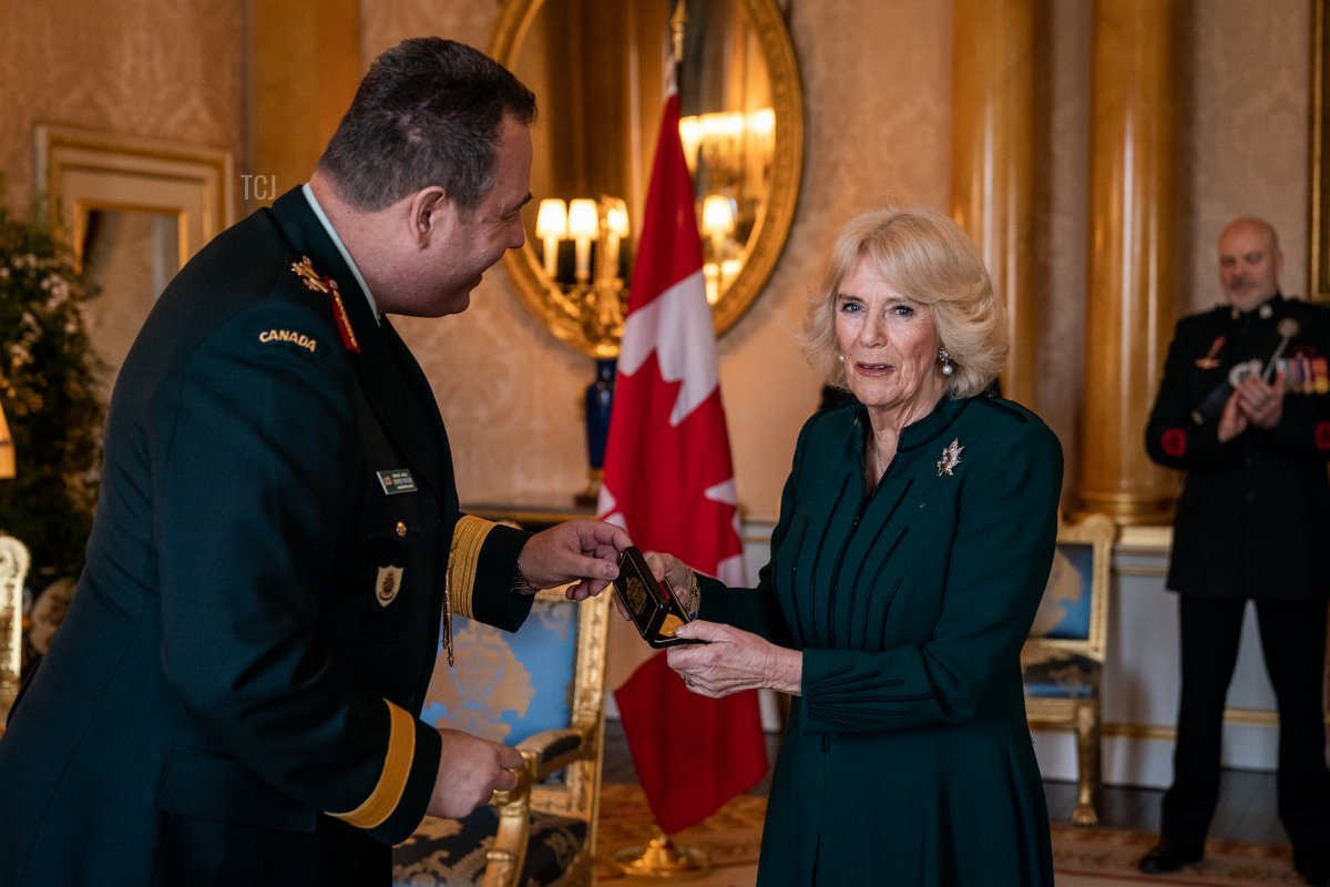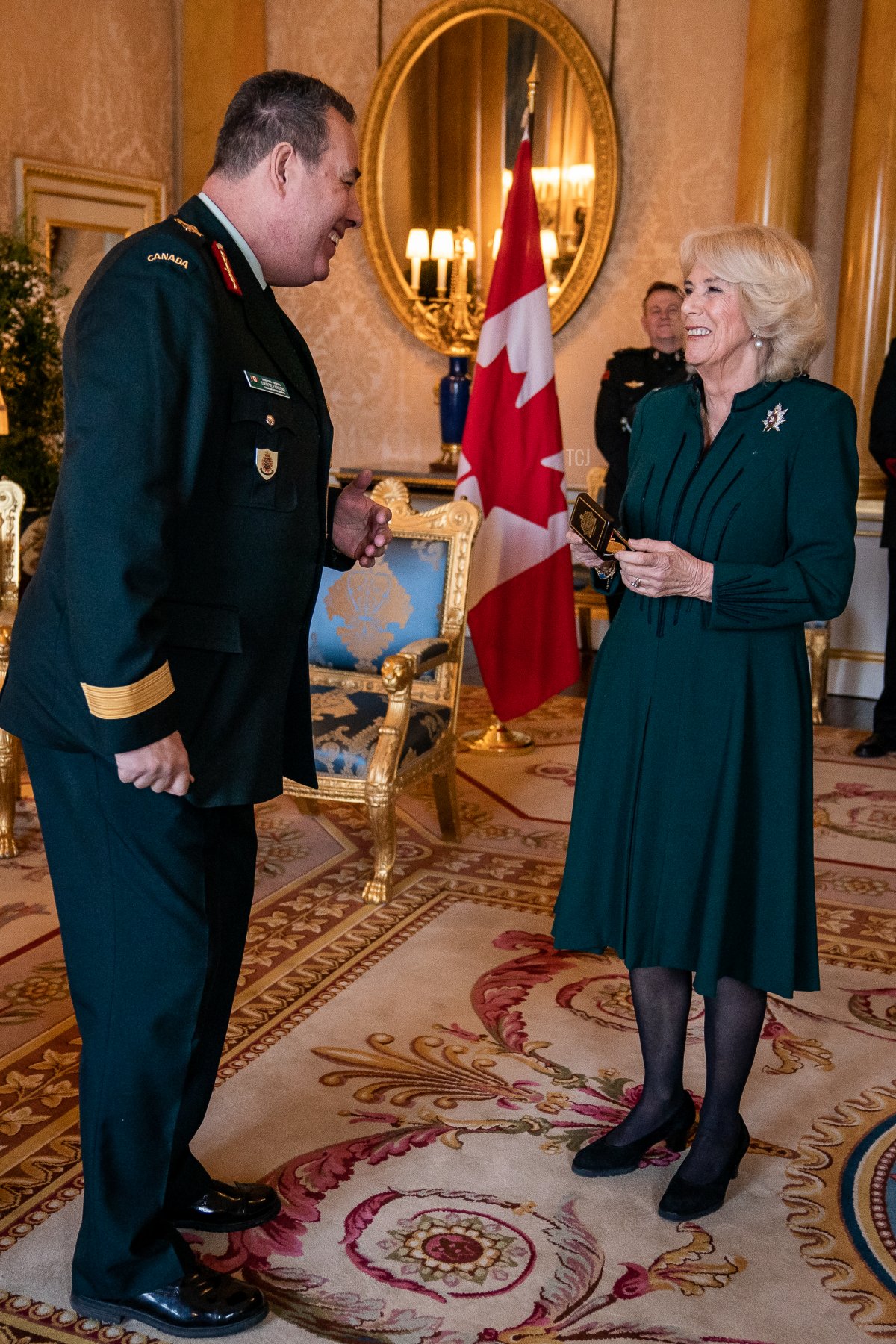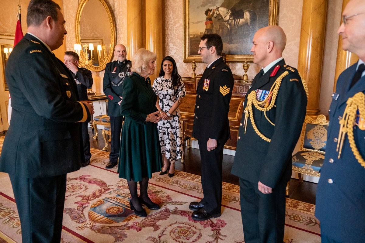During the day on Wednesday, Queen Camilla hosted a reception at Buckingham Palace for the Queen’s Own Rifles of Canada, a Toronto-based regiment of the Canadian Armed Forces.
