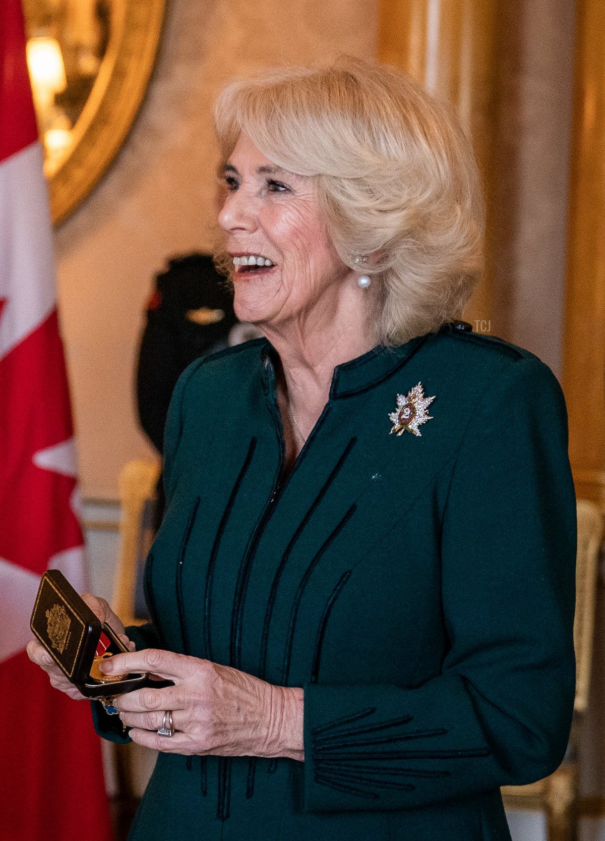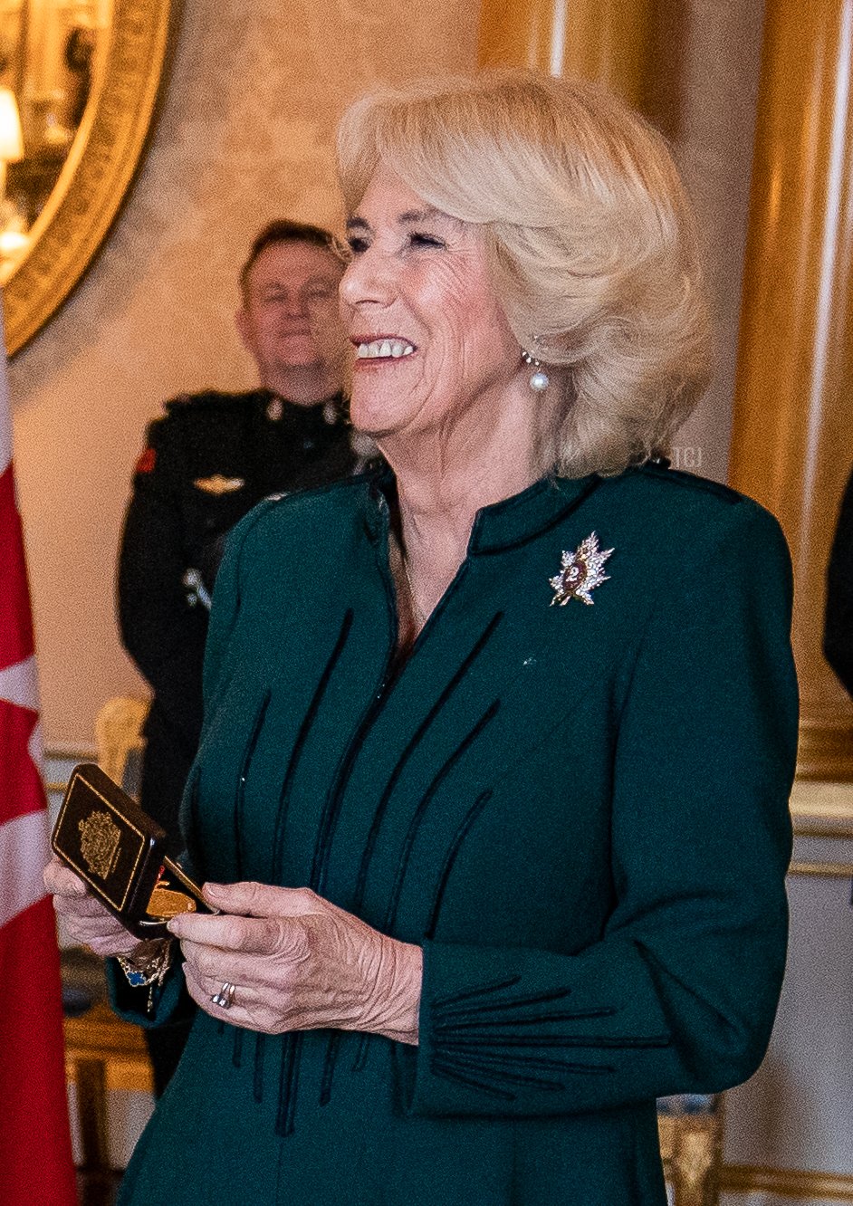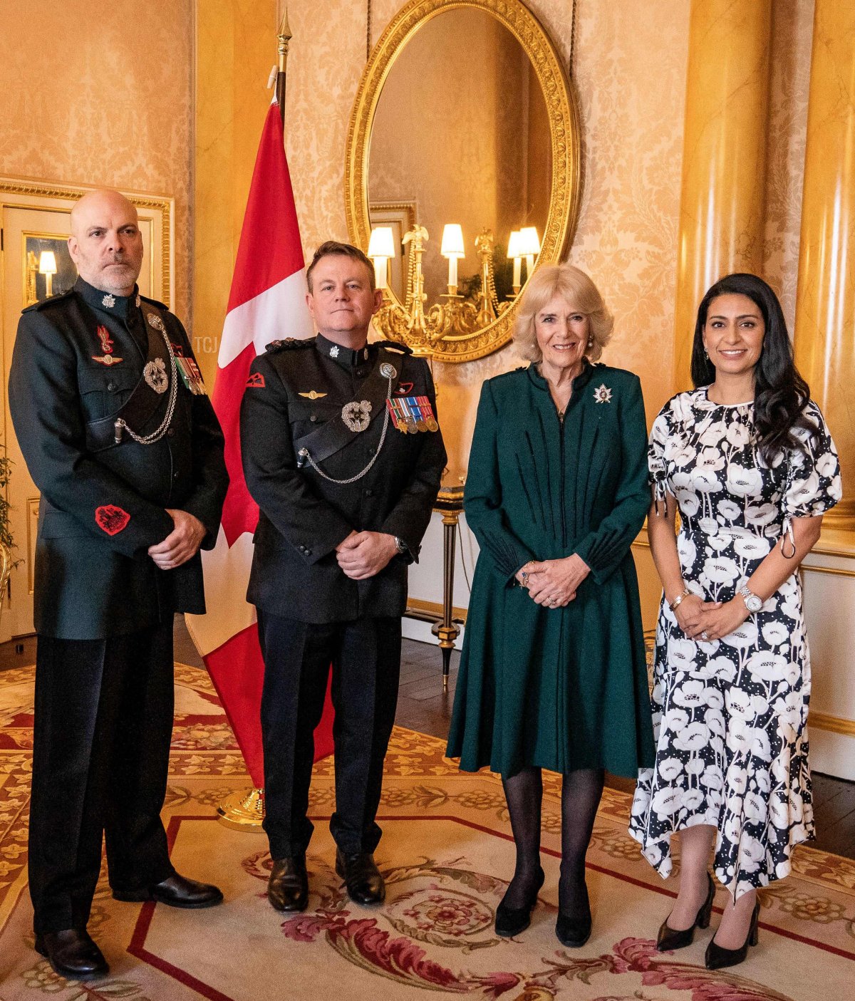 During the reception, Brigadier-General Dwayne Parsons presented Queen Camilla with the Canadian Forces’ Decoration. The medal recognizes those who have completed twelve years of military service. This year marks Camilla’s twelfth year as the regiment’s Colonel-in-Chief.