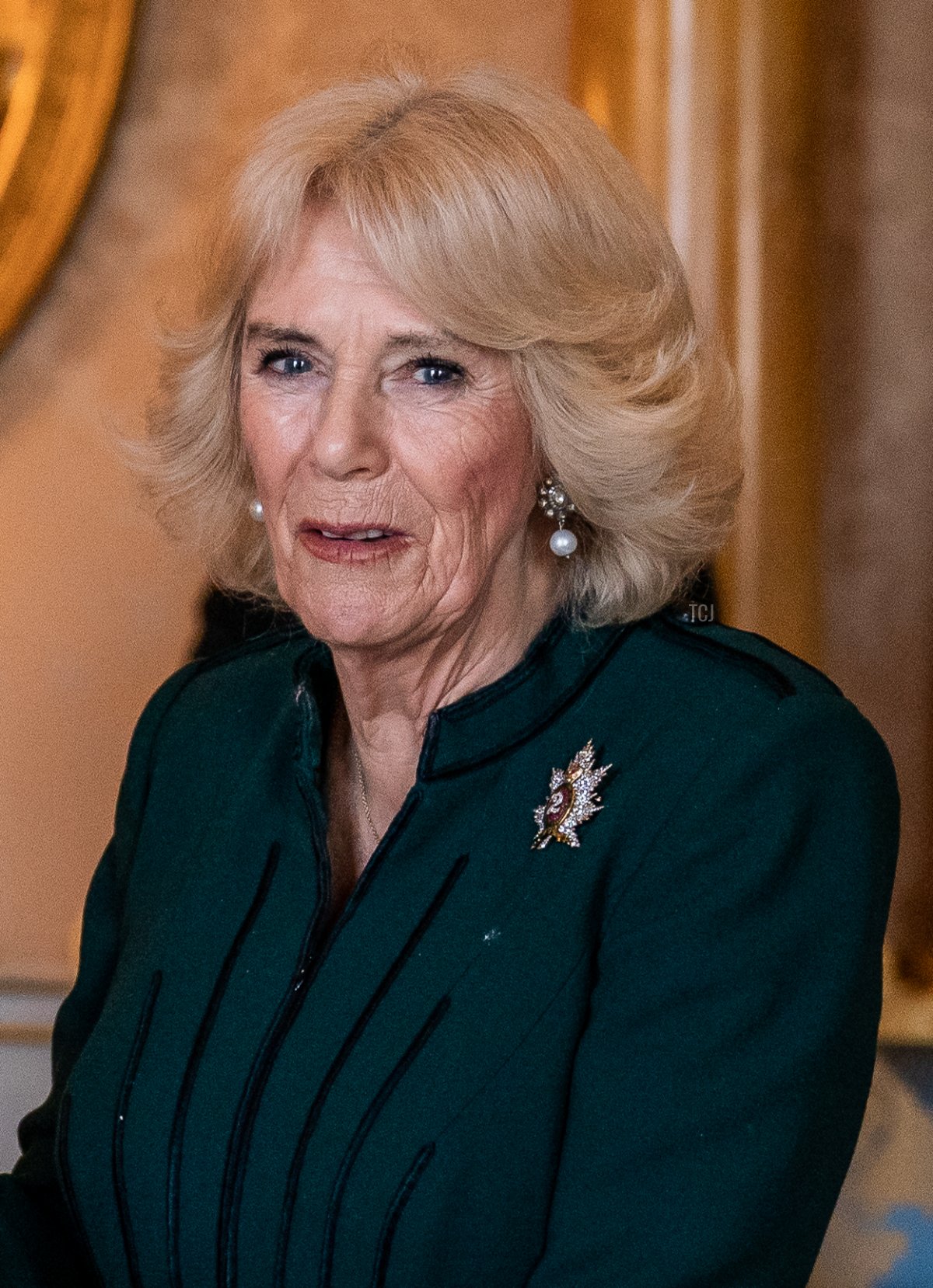 On Wednesday, Queen Camilla was on hand for a pair of receptions at Buckingham Palace, wearing very different diamond jewelry for each event.