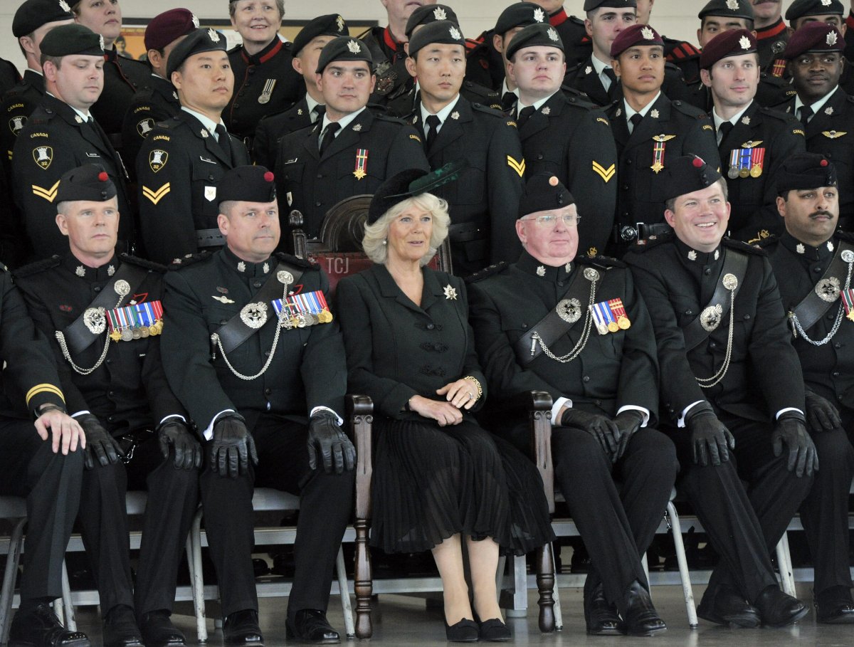 Here’s one of Camilla’s earliest appearances in the badge. She made her inaugural visit to the regiment’s Toronto headquarters, Moss Park Armory, as Colonel-in-Chief in May 2012.
