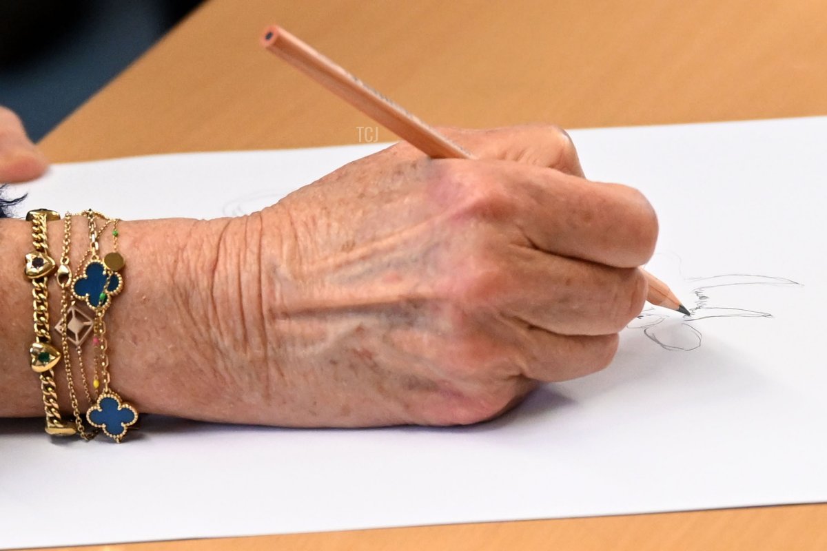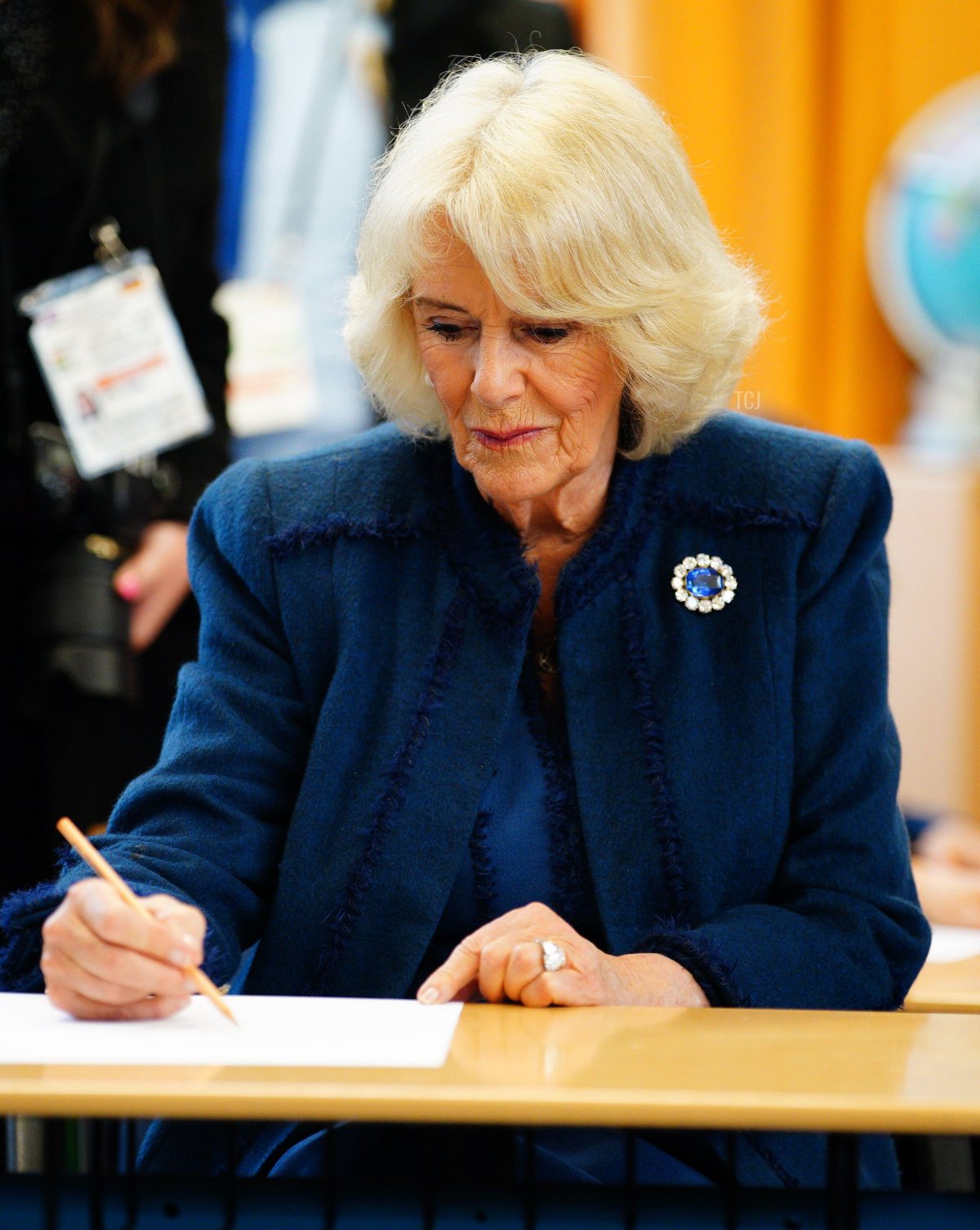 We also got a good glimpse of Camilla’s bracelets as she drew during the school visit.