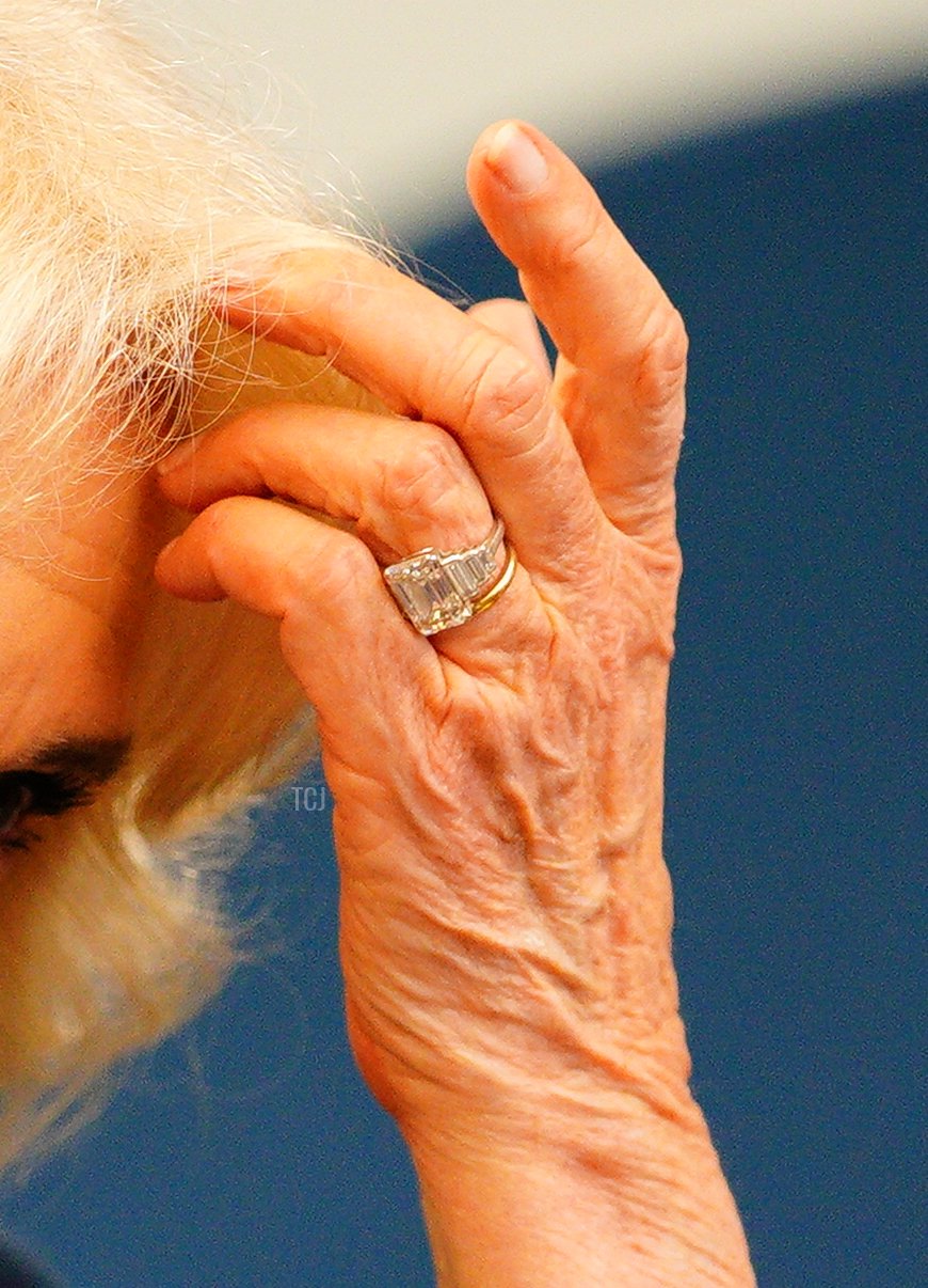And we also got a great view of her engagement and wedding rings during the same engagement.