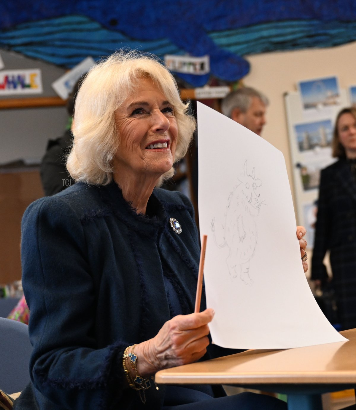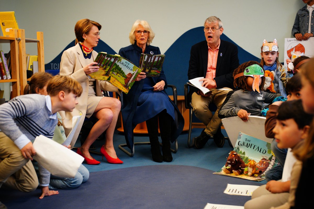 Camilla also visited Rudolf Ross Grundschule School alongside Elke Buedenbender and Axel Scheffler, the illustrator of the children’s book The Gruffalo.