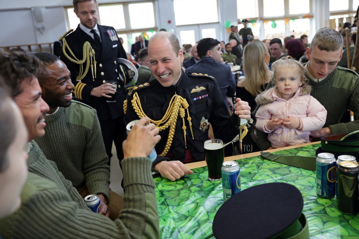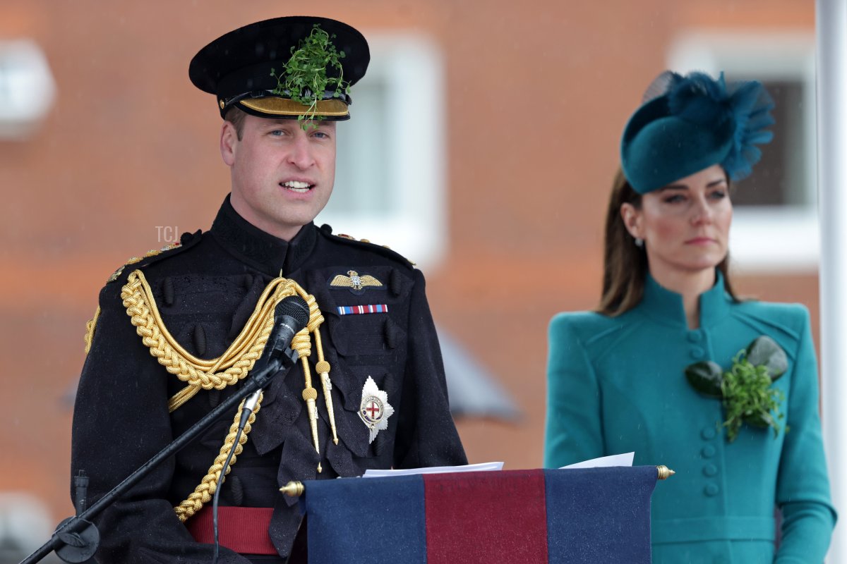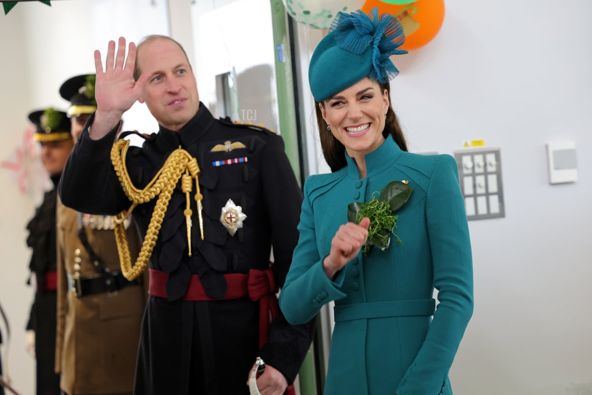 The Prince and Princess of Wales arrived at Mons Barracks in Aldershot on Friday for the annual St. Patrick’s Parade and celebration with the 1st Battalion Irish Guards.