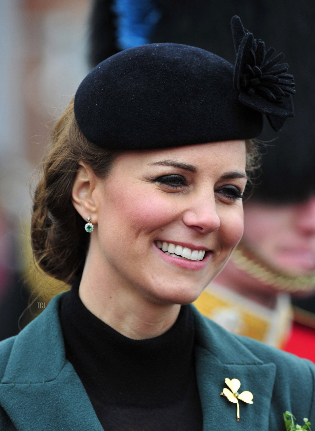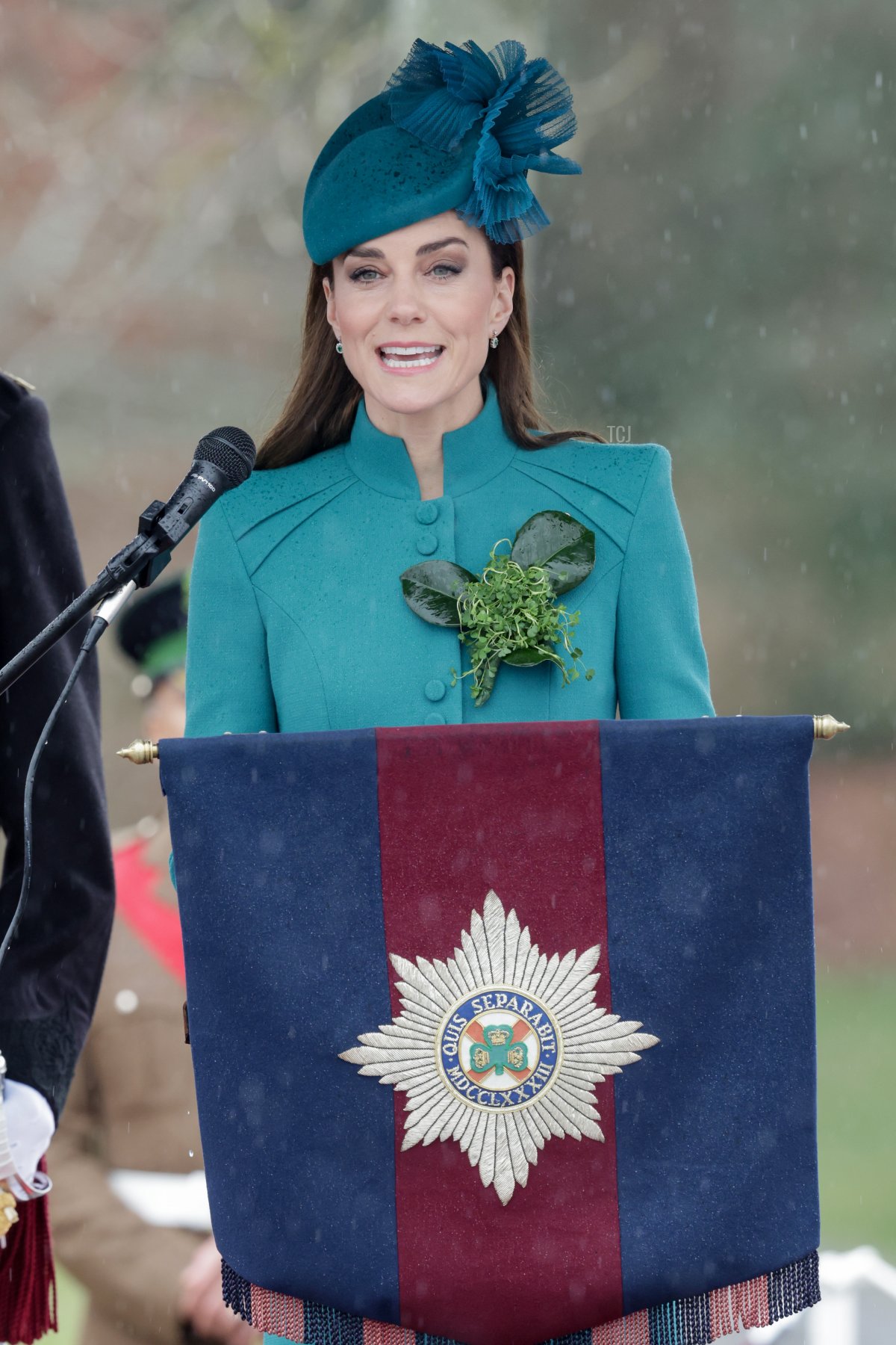 Kate also received shamrocks of her own during the parade. They were fastened to an anchor thread on her coat, placed there specifically for that purpose.