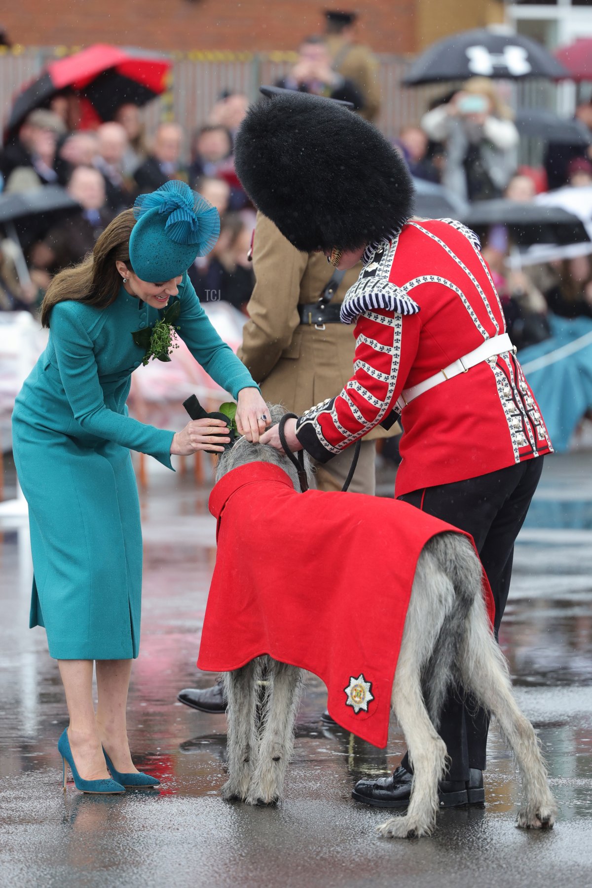 Even the regimental mascot, an Irish Wolfhound name Seamus, received shamrocks from the princess during the parade.
