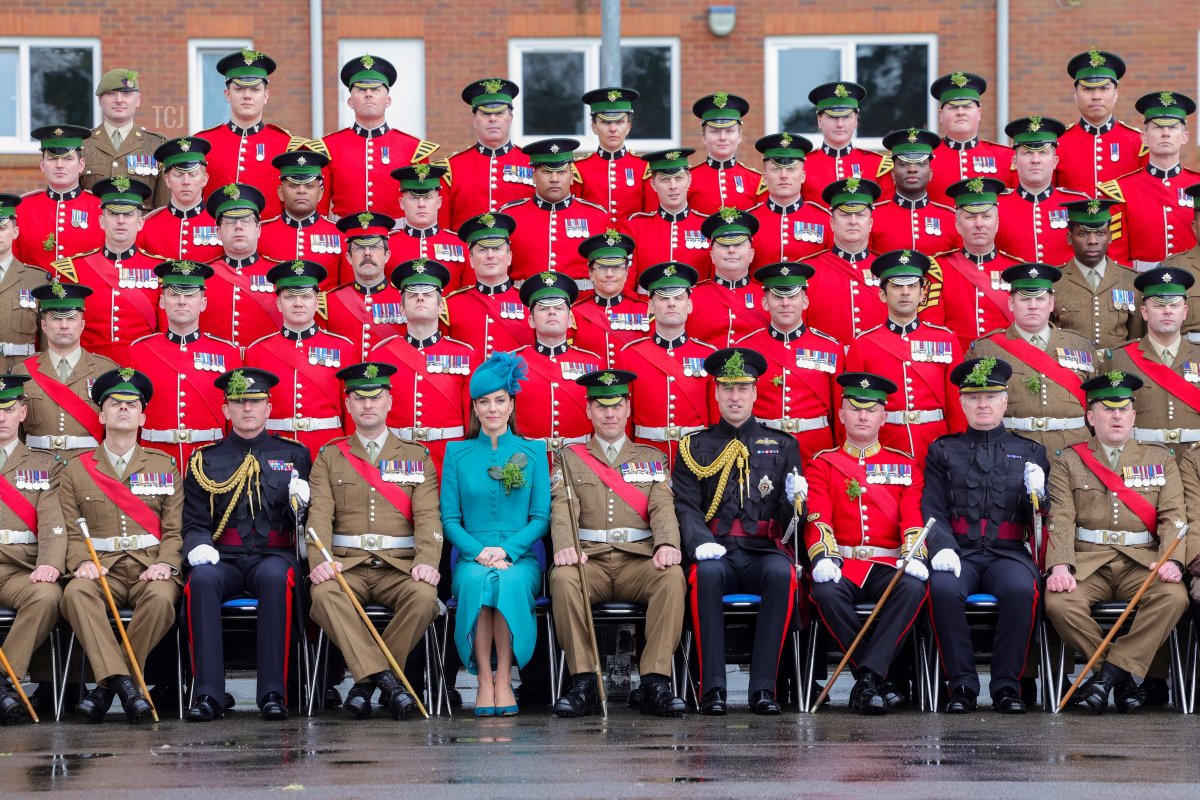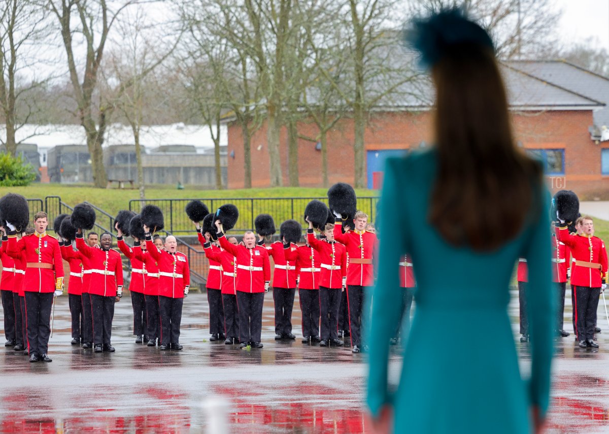 Kate also made remarks during the celebration. She noted, “I really couldn’t be prouder to stand in front of you here today. It really is a true honor to be your Colonel. I am here to listen to you, to support you, and to champion you in all that you do. This is a responsibility I do not take lightly.” She concluded by thanking her husband, “Colonel William,” for his dedication to the regiment during his tenure with them.