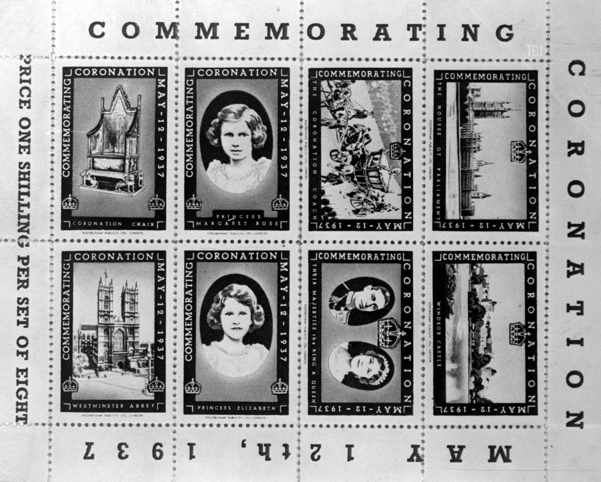 Commemorative stamps were produced ahead of the ceremony as well. This series features images of the new monarch, his wife, and their children, as well as Westminster Abbey, the Coronation Chair, the Gold State Coach, the Houses of Parliament, and Windsor Castle.