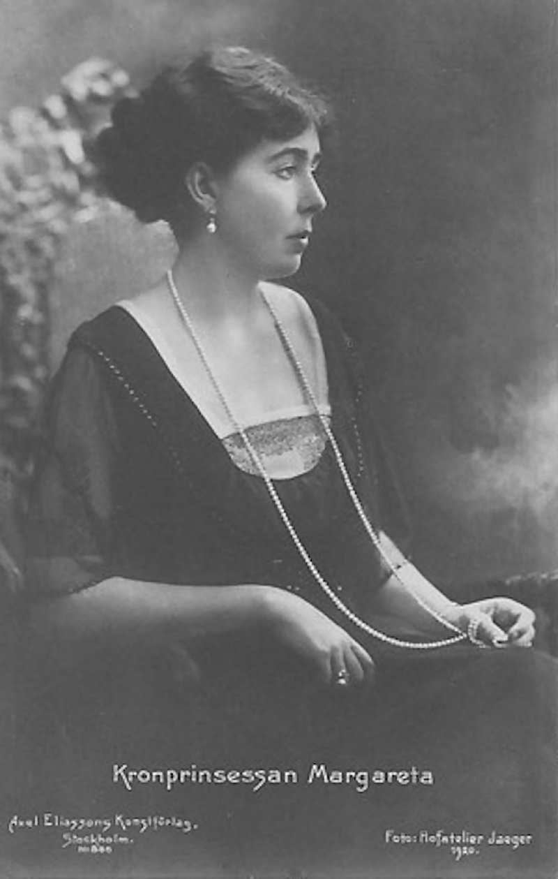 This is one of the last portraits of Margaret wearing her long pearl necklace. It was taken not long before her death in May 1920. Margaret’s daughter, 10-year-old Princess Ingrid of Sweden, inherited the necklace after her mother’s untimely passing.