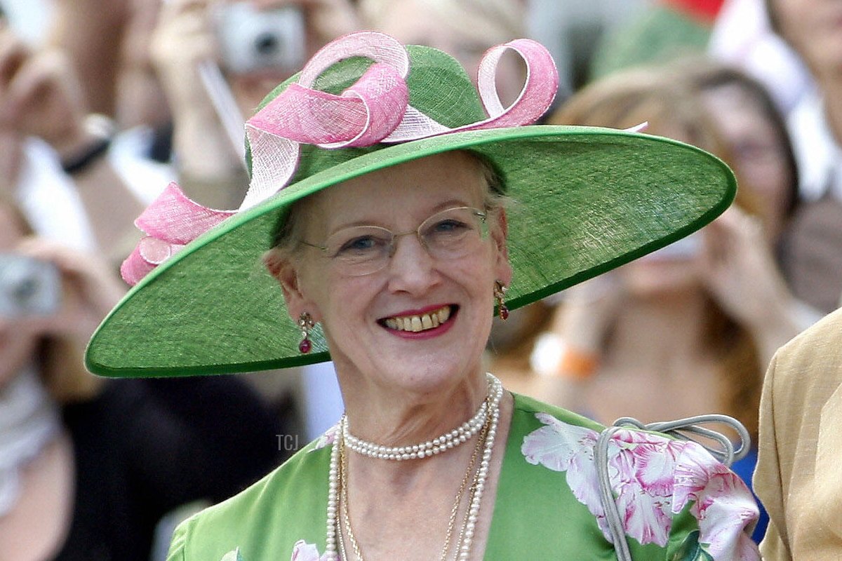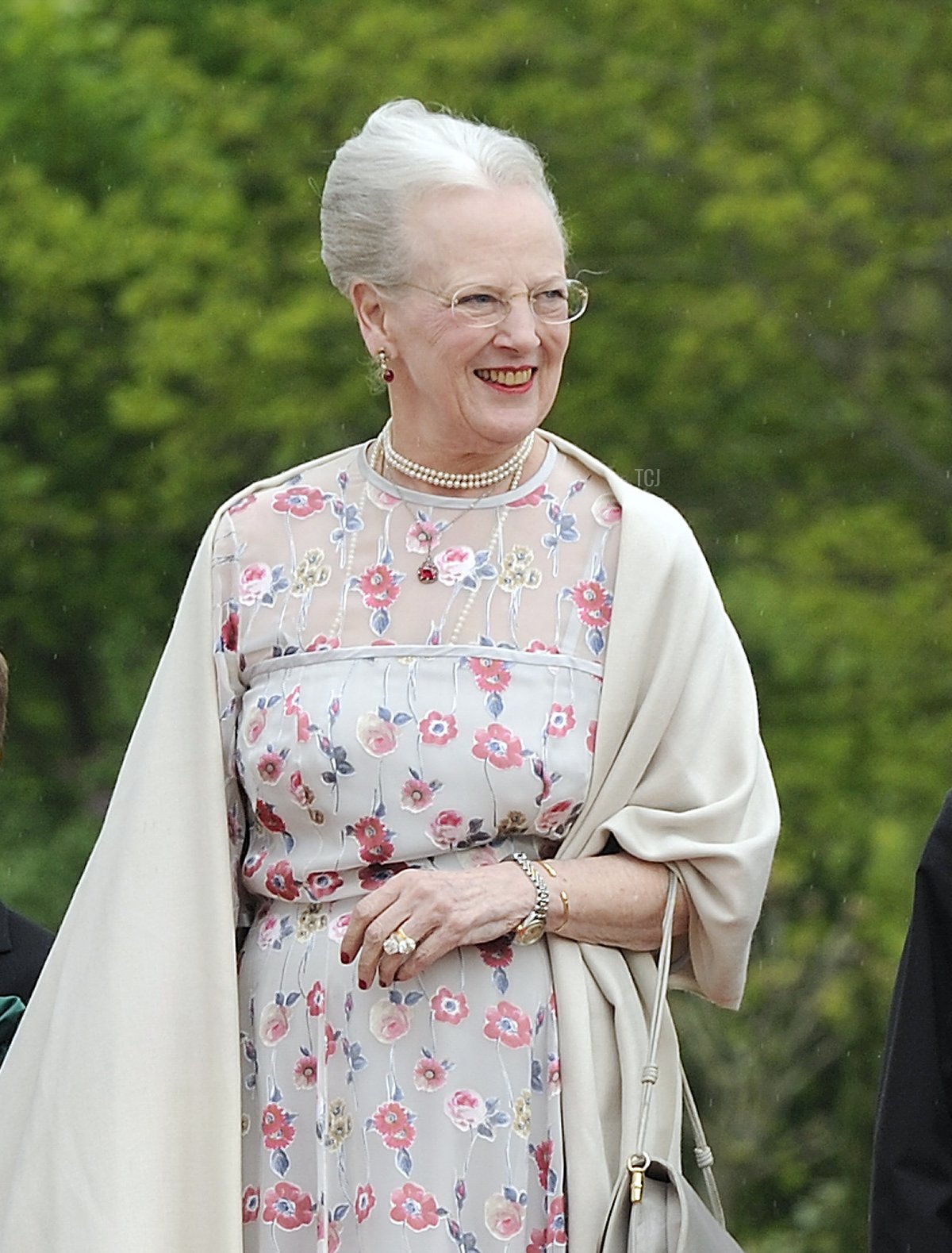 Queen Margrethe also inherited the wedding pearls from her grandmother and namesake. While Margrethe has several significant pearl necklaces at her disposal, she tends to wear the Connaught Wedding Pearls for occasions related to her family. Here, she wears the necklace for the christening of her first granddaughter, Princess Isabella of Denmark, in July 2007. She’s also wearing a pair of gold, ruby, and enamel earrings that belonged to Princess Margaret.