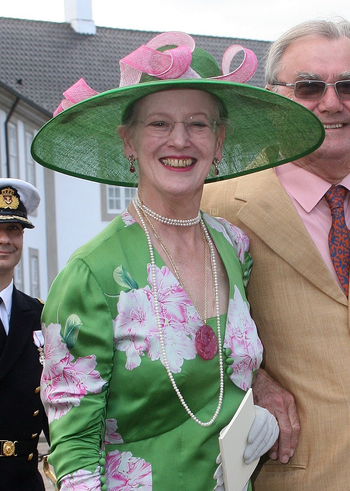 Queen Margrethe has also worn the earrings separately for family occasions, like the christening of Count Henrik of Monpezat in July 2009. For that service, she also pinned another Connaught family heirloom, the diamond and pearl brooch given to her by her great-aunt, Lady Patricia Ramsay, to her collar.